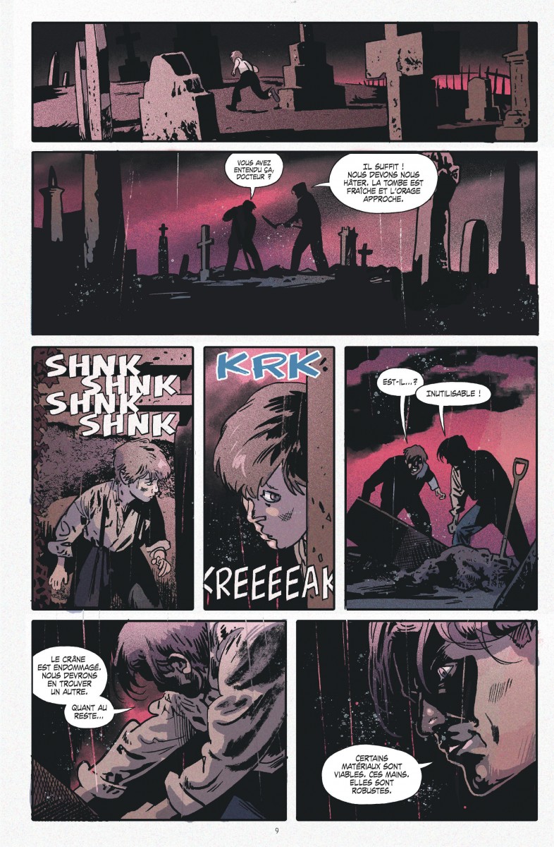 De ces dépouilles est né un nouvel être, mais celui-ci est-il véritablement nouveau ? Se pourrait-il que ces jambes, ces bras, ces mains se souviennent de leur ancien propriétaire, des individus qui ont, sans le vouloir, contribué à la création du monstre de Frankenstein ? (texte : Urban Comics)