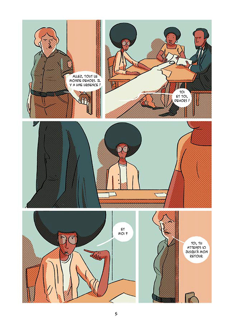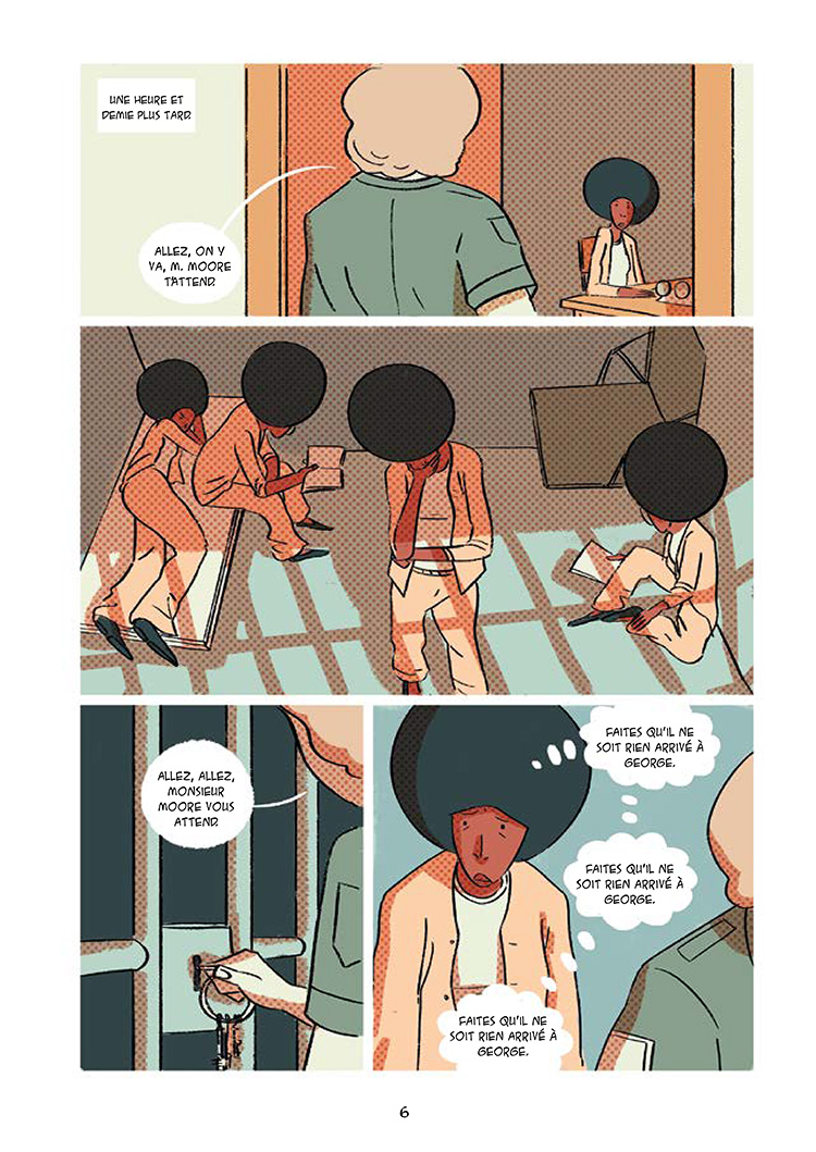 Ouh, pas vraiment bonne cette biographie ! Je me suis forcé à la finir pour l'entrer sur le site mais j'avais pas envie de la finir, c'est dire. J'aime beaucoup Angela Davis, une femme noire militante des droits humains, communiste et lesbienne dans les années 70. Disons que c'est pas un personnage ordinaire, professeure de philosophie et parlant très bien français de plus, une femme toujours sûre de nos jours dont les interviews en français sont consultables facilement en ligne. Bref une figure inspirante que j'avais envie de plus découvrir ! Et ben en sortant de cette BD, je ne connais rien de plus sur elle. Et c'est décevant. La BD est construite de façon à parler surtout des années 60 jusqu'à son emprisonnement début 70, son procès et sa libération. Sauf que la BD est un enchainement de réunion des clubs (notamment affiliés au Black Panthers), de coups de téléphone et d'échanges. Rien ne semble naturel, et je n'ai jamais compris où on était, ce qu'on faisait là. L'engagement d'Angela est définie avant la BD, jamais présenté, jamais détaillé, jamais contextualisé. Il manque toute la valeur du documentaire : les informations autour, le contexte (jamais détaillé), la pensée de Angela dans son ensemble, sa vie d'après, l'importance de son procès qui est construit comme un climax alors qu'il est présenté en deux pages. J'étais vite lassé des dialogues dont je ne comprenais ni le sens ni l'intérêt, jusqu'à un final qui semble vouloir montrer l'importance de tout ça sauf que rien n'est correctement introduit avant et permettrait de comprendre l'ensemble de sa vie. Une biographie que je ne peux pas recommander, donc, d'autant que le dessin est franchement pas fameux. Les personnages sont assez raides et pas très détaillés, le graphisme est simple et pas toujours très clair, d'autant que l'enchainement ne fait pas toujours fluide. On dirait une biographie de commande mais l'autrice semble réellement avoir de l'intérêt pour la vie d'Angela Davis, et je trouve ça dommage qu'elle rate à ce point. C'est lisible mais franchement pas compréhensible. La fiche wikipédia m'a permis de comprendre pas mal d'éléments de la BD, et ça n'est pas normal que j'ai du faire des recherches extérieurs pour mieux comprendre. De fait, je pense que pour comprendre cette femme admirable, je vais aller me pencher sur ses bouquins traduits en français.