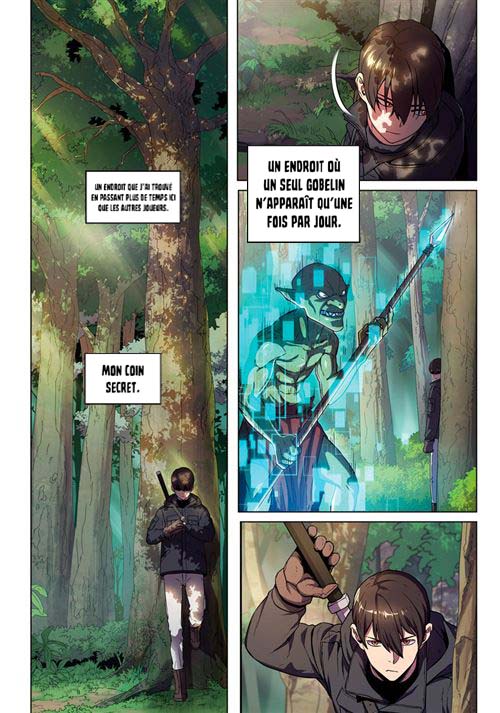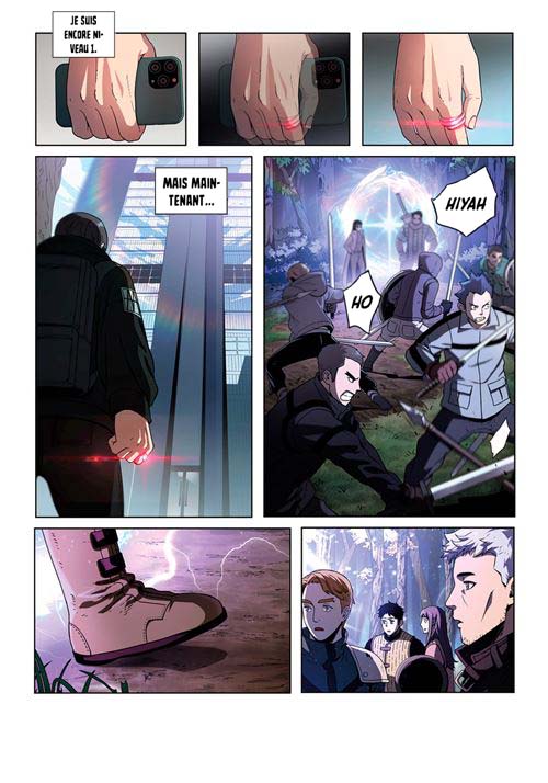 The Player who can't level up est l'un des premiers webtoons que j'ai lus, par curiosité pour découvrir ce medium. Il se déroule dans un univers quasiment identique au webtoon plus célèbre qu'est Solo Leveling, à savoir une Terre contemporaine où d'étranges portails sont apparus permettant à des aventuriers d'aller affronter des monstres comme dans les niveaux d'un jeu vidéo. Seuls certains élus peuvent franchir ces portails, et parmi eux encore plus rares sont ceux qui ont acquis d'incroyables pouvoirs et sont devenus riches et célèbres en progressant dans ces mondes de fantasy. Gygyu, lui, pensait pouvoir sortir de la misère en devenant un jour un de ces "players", mais il a vite déchanté en découvrant qu'il était physiquement incapable de progresser et dépasser le niveau 1. Jusqu'au jour où il met la main sur une, puis deux armes extraordinaires qui vont lui permettre de devenir légendaire malgré ce handicap initial. C'est clairement une publication destinée aux geeks amateurs de manga, de webtoons et de jeux vidéo, plus particulièrement les MMORPG. Son pitch, très typique dans ce domaine, rappelle un isekai où un humain contemporain vit des aventures de fantasy dans des mondes parallèles. Sauf qu'ici, tout est organisé : une véritable industrie s'est mise en place sur Terre pour soutenir ces combattants et exploiter les richesses qu'ils rapportent des donjons. Le concept central de cette série, c'est que le héros reste coincé au niveau 1 malgré des années d'expérience. Ce handicap disparaît cependant très vite avec l'apparition de ces épées qui le rendent presque du jour au lendemain aussi puissant que les plus grands combattants humains. Un bon gros cheat code bien aidé par le scenarium. Au début, c'est fun : voir celui qui était méprisé devenir super fort, rabattre leur caquet aux arrogants et épater tout le monde contre des ennemis toujours plus puissants a un côté défoulant. Mais l'idée s'essouffle rapidement et il ne se passe plus grand chose de réellement captivant, d'autant que, comme dans beaucoup de webtoons, le rythme narratif est étiré à l'extrême pour durer le plus longtemps possible. Graphiquement, on retrouve le style typique des webtoons : très informatique, froid, avec des personnages mis en avant sur des décors sans substance. Il faut toutefois reconnaître que c'est ici plutôt soigné, avec de bonnes couleurs et une mise en scène assez efficace. L'adaptation du format numérique au format manga est également correcte, avec beaucoup de cases par page : on évite ainsi la narration trop aérée qui fait tourner les pages trop vite, même si on ressent parfois que certaines cases ont été un peu trop rapetissées par rapport à leur version originale. Concrètement, ce n'est pas une série que je conseillerais d'acheter : elle s'épuise trop vite et déçoit sur la durée. En revanche, pour découvrir l'univers des webtoons, lire un ou deux tomes peut être une approche intéressante. Note : 2,5/5