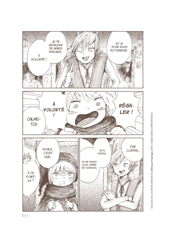2.5 Cette série de manga m'a attiré à cause de son dessin qui est bien différent des styles que l'on retrouve habituellement dans les mangas. Le style rappel ce que l'on peut retrouver dans les livres pour illustrations occidentaux et j'aime bien. Malheureusement, je pense que je suis trop vieux pour ce genre de séries qui s'adressent aux enfants. L'éditeur fait la comparaison avec l'univers de Tim Burton, mais on est loin du coté macabre et irrévérencieux du réalisateur américain. On est plus dans du feel good où personne n'est vraiment méchant et l'héroïne ne semble jamais vraiment en danger. Je pense que j'ai un problème avec les mangas dont le principal objectif est de donner des bons sentiments aux lecteurs parce que la plupart du temps je m'ennui un peu. Ce qui n'aide pas non plus c'est que le ton est enfantin, c'est vraiment une série qui va surtout parler aux 7-10 ans. Je conseil donc un emprunt à la bibliothèque pour les parents qui ont des enfants de ce groupe d'âge qui aiment bien les histoires remplient de créatures fantastiques. Perso en tant d'adultes j'ai lu les deux premiers tomes sans grande passion et je n'ai pas trop envie d'en lire plus.