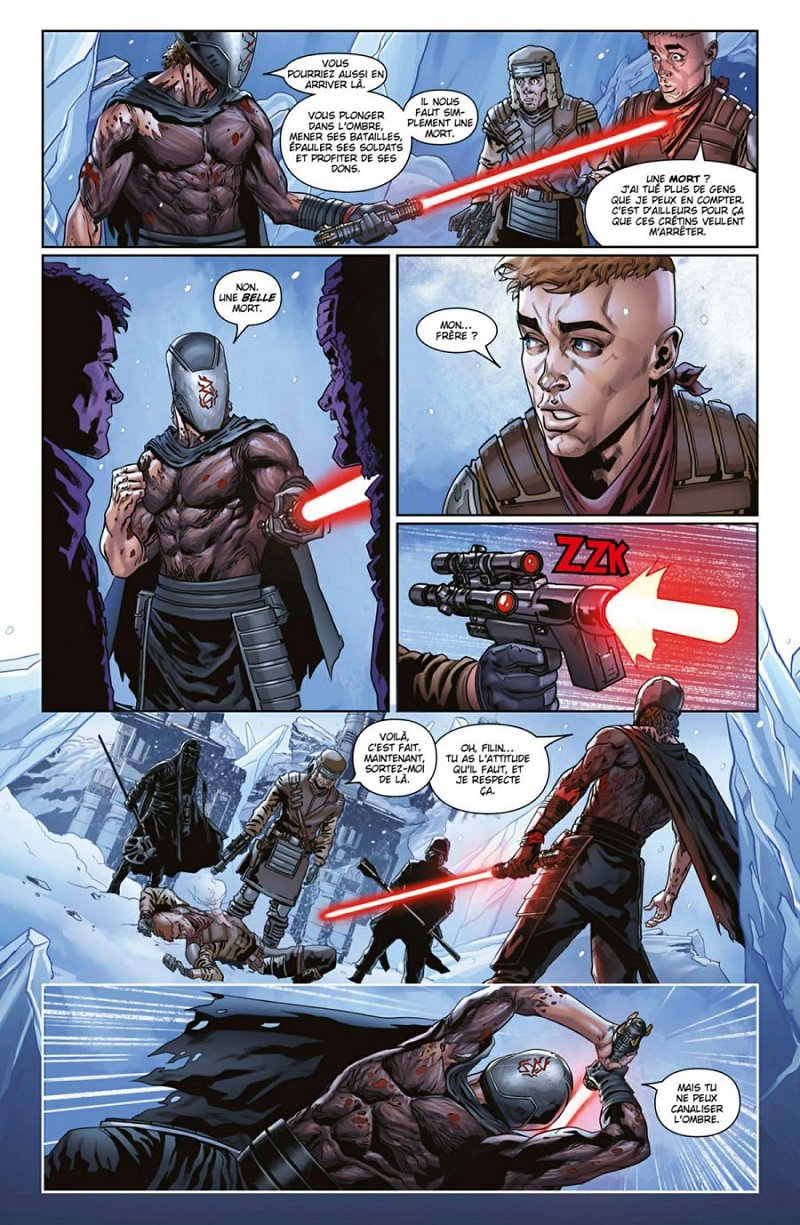 Un album que j’ai apprécié et que je situe dans une moyenne haute de l’univers. Pourtant je ne m’étais pas pressé de l’emprunter, la postlogie (comme pour beaucoup) est loin d’être ma période préférée. Honnêtement ici rien de fou mais j’ai tellement dû enchaîner des tomes SW pourris que le présent résultat fait plaisir et ne trahit pas la franchise. Chronologiquement nous nous situons avant le réveil de la force, l’histoire débute juste après la prise de bec entre Luke et son élève Ben Solo et elle se terminera par l’intronisation de ce dernier en Kylo Ren. Ça m’a semblé un peu rapide à lire, l’aventure est pliée en 4 chapitres et moins de 100 pages, néanmoins j’y ai retrouvé ce que j’aimais dans l’univers. Pas de grosses surprises donc mais ça reste sympathique à lire pour les amateurs. En plus la partie graphique est plutôt solide et avenante. Je ne déconseille pas.