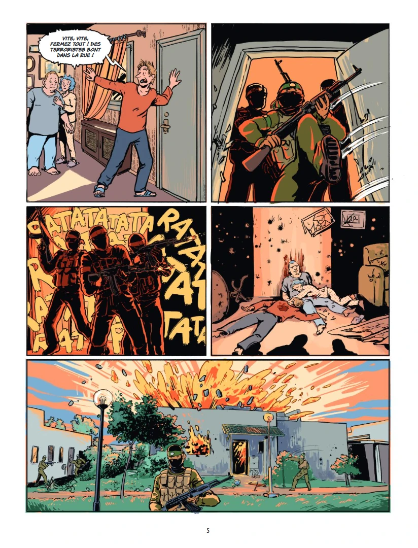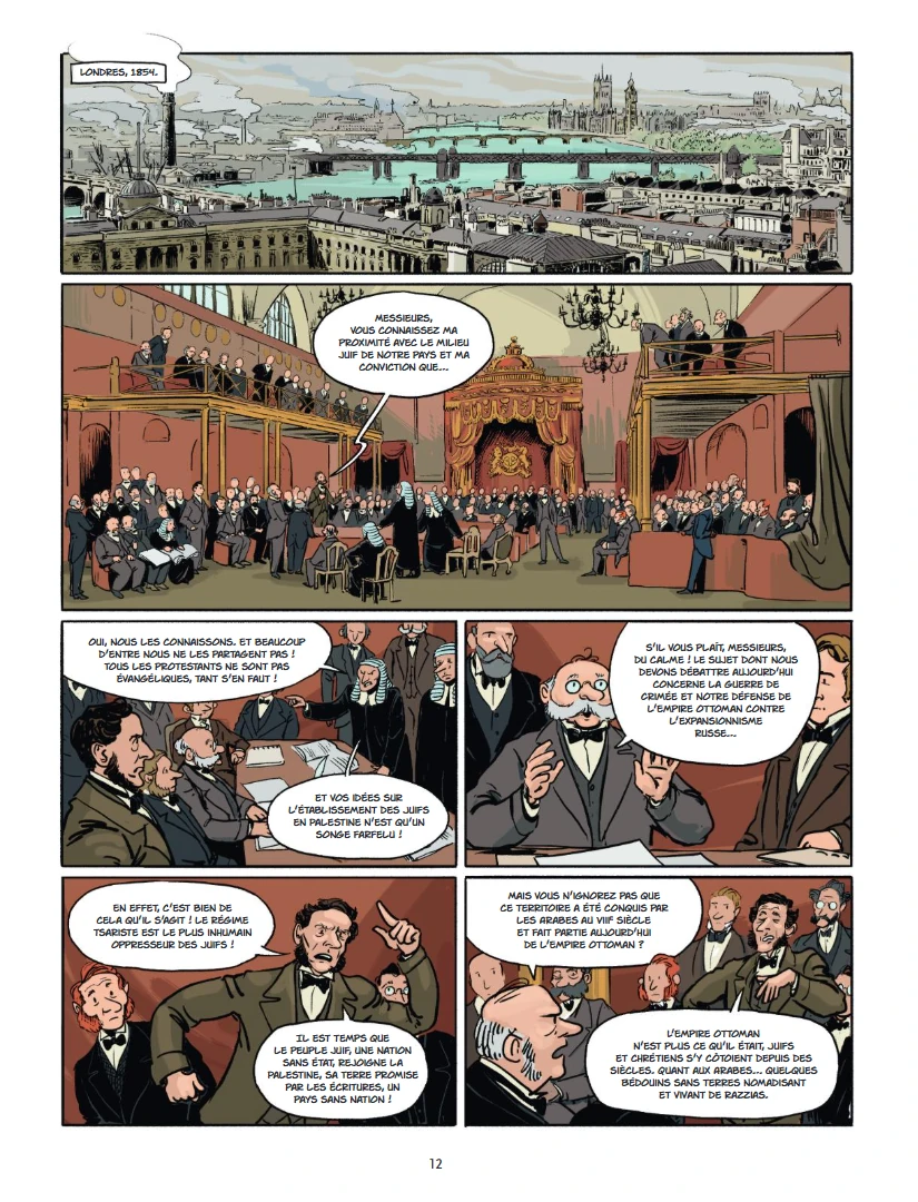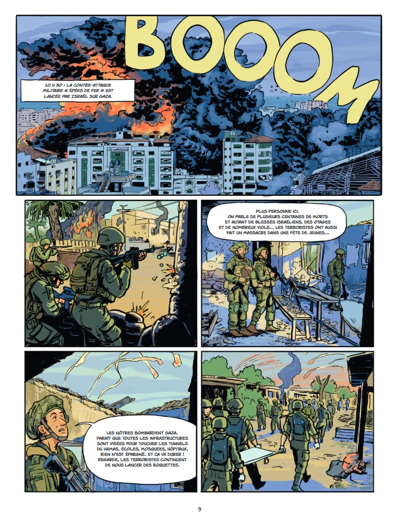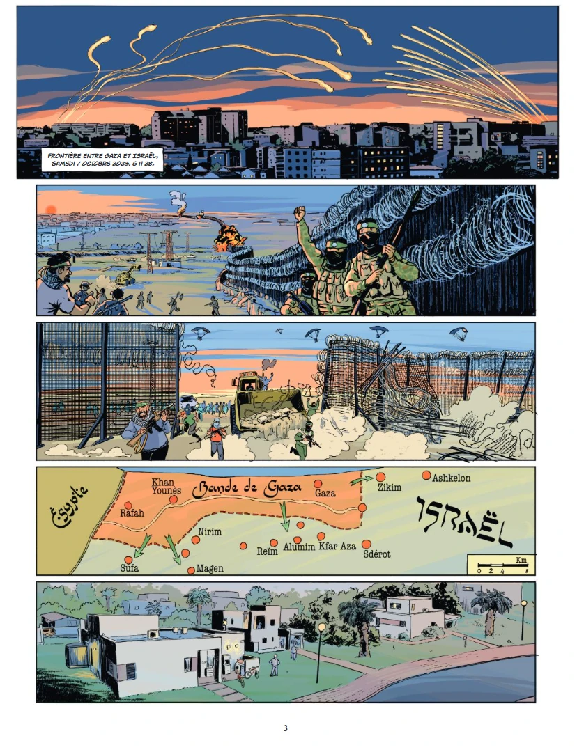 Voici une BD malheureusement de circonstance, qui permet de prendre du recul sur les origines de ce conflit qui nous parait insoluble et sans fin. Pour ce faire, c'est Georges Bensoussan, historien français spécialiste d'histoire culturelle de l'Europe des XIXe et XXe siècles et, en particulier, des communautés juives, également ancien directeur éditorial du Mémorial de la Shoah à Paris qui co-scénarise cet album avec Danièle Masse, également spécialiste de l'Orient et du Moyen-Orient. On part donc avec une base solide pour remonter le temps et le fil d'une tragédie inscrite dans l'Histoire. L'album s'ouvre sur les terribles attentats du Hamas du 7 octobre 2023 en Israël et ses prises d'otages, pour remonter le fil du temps jusqu'au début du XXe siècle. De la position des juifs dans le monde à leur arrivée en Palestine et comment ils ont petit à petit racheté les terres palestinienne et favorisé l'immigration des juifs du monde, c'est tout ce cheminement qu'on nous explique. L'Angleterre et les autres pays occidentaux, France comprise, ont leur responsabilité dans ce marasme, poursuivant leur politique coloniale tant que ce fut possible ou calculant au mieux pour leurs intérêts économiques. C'est toute cette mise en perspective qui nous permet de mieux comprendre l'inéluctabilité du conflit actuel et les responsabilités partagées. C'est ainsi qu'on découvre que le terrorisme est loin d'avoir été l'apanage des palestiniens ; les juifs aussi ont eu leurs factions terroristes (L'Irgoun ou le Lehi) qui semaient la terreur chez les arabes et qui ont même assassiné Lord Moyne, le gouverneur officiel britannique en 1944. Côté dessin, on est dans le classique : Yana Amadovic nous propose un trait réaliste qui cadre parfaitement avec ce qu'on attend d'une BD documentaire.