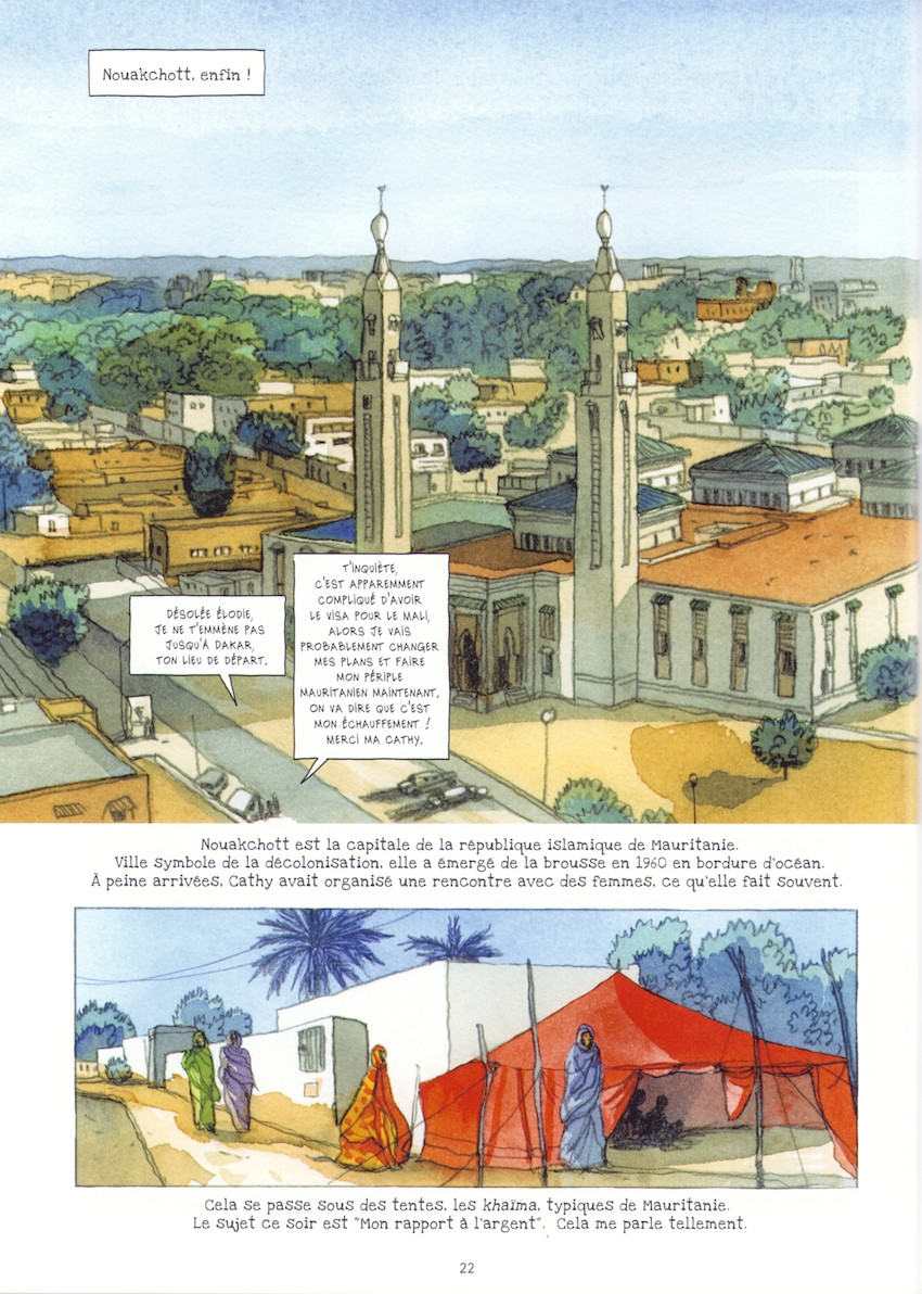 D’Ouest en Est, de Dakar à Djibouti, Élodie Arrault va entreprendre une épopée d’environ 8000 kilomètres. À vélo, à pied avec des dromadaires, en bus, et en dernier recours en avion, elle part rencontrer les acteurs du projet le plus ambitieux d’Afrique contre la désertification : la grande muraille verte, projet qui la passionne et dont elle souhaite devenir l’une des « ambassadrices ». La grande muraille verte, c’est la réponse de 11 pays du Sahel aux effets du changement climatique et à l’érosion des sols. Bien mieux qu’une muraille, c’est une mosaïque d’écosystèmes verts, productifs et nourriciers qui s’inscrit dans un programme global de développement durable en restaurant 100 millions d’hectares de terres : sécurité alimentaire, protection de la biodiversité, création d’emplois, séquestration du carbone, paix et lutte contre les migrations climatiques. Après deux ans passés à se documenter, Élodie Arrault prend contact avec les différents acteurs locaux. En 2021 et 2023, pour raconter et contribuer aux initiatives portées par les populations et ONG locales, elle entreprend un voyage à la fois solitaire mais partagé, éprouvant mais heureux, qui va profondément l’enraciner dans ses choix de vie. Ce périple écologique n’a rien d’un voyage d’agrément : le tracé comporte des zones sensibles et déconseillées. L’évolution des conflits amènera Élodie à changer ses plans sur place. Joël Alessandra a rejoint le périple d’Élodie à plusieurs reprises, pour être au plus juste des paysages traversés dans ses dessins aux aquarelles somptueuses.