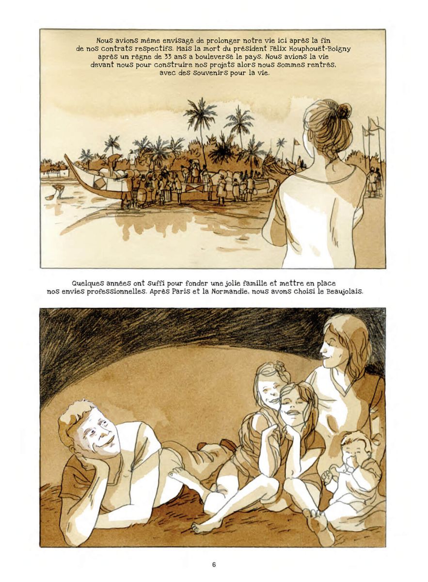2.5 La scénariste raconte son périple dans des pays africains pour voir les résultats de l'ambitieux projet de la grande muraille verte, une initiative pour combattre le réchauffement climatique et la désertification. Je ne savais rien sur ce projet et je trouvais cela intéressant de le découvrir, mais malheureusement ce n'est pas raconté de manière passionnante. La narration manque de fluidité et le dessin n'est pas dynamique, deux qualités qui me semble essentiel dans un documentaire qui contient autant d'informations. D'ailleurs, on apprend tellement de choses que j'ai un peu peur d'en avoir oublié la moitié, lorsqu'une nouvelle information rentrait dans ma tête une autre en sortait ! Le pire selon moi est qu'il y a beaucoup de textes en dehors des cases. Ça me rappelait les débuts de la bande dessinée français lorsque les bulles n'existaient pas et qu'on avait droit à du texte narratif en-dessous des images. J'ai toujours trouvé ce procédé indigeste à lire et je ne vais pas changer d'idée maintenant. Il y a des séquences d'art séquentiels, mais aussi d'autres où le dessin est pratiquement facultatif au point où faire un bouquin aurait été mieux. En gros, l'album parle d'un projet important, mais c'est pas raconté de manière captivante.