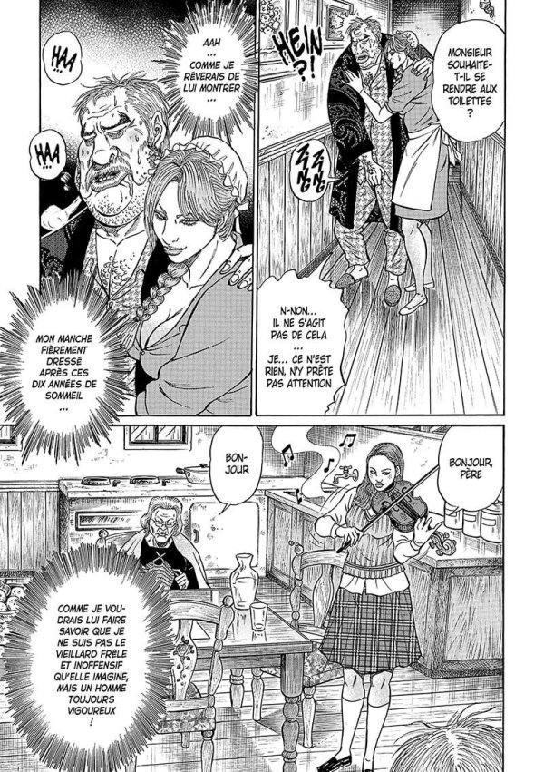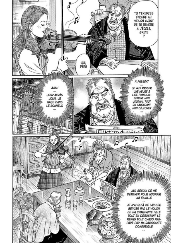 L'adaptation du roman de Kafka par Bargain Sakuraichi, pseudonyme du mangaka Toshifumi Sakurai qui a fait deux séries que j'adore. On reconnait bien la patte de l'auteur avec à la fois son dessin si personnel et aussi avec son humour. Parce que c'est vraiment une adaptation réinterprétée par un autre artiste et pas seulement une adaptation fidèle qui ne ferait que reprendre point par point ce qui s'est passé dans l'œuvre de base. Au lieu de suivre ce qui arrive à ce pauvre Grégor, on voit surtout la réaction de sa famille et en particulier le père qui est le vrai personnage principal de cet album, Grégor étant relégué en personnage secondaire qui souvent n'apparait pas ou très peu au cours d'un chapitre. L'intrigue tourne surtout autour de ce que doit faire sa famille maintenant que celui qui ramenait l'argent au foyer ne peut plus travailler. J'avoue que j'étais un peu perplexe par ce que je lisais. On retrouve l'humour de l'auteur que j'aime bien, mais je ne pense pas que cela colle vraiment au style particulier de Kafka. Tous les gags autour de la libido du paternel me semblent hors de propos, mais il faut dire aussi que je n'ai pas lu le roman depuis très longtemps et que je n'ai que de vagues souvenirs. Je compare surtout cette adaptation avec d'autres adaptations de Kafka que j'ai lues ou vues et le ton est très différent de ce que j'avais vu jusqu'à présent dans les adaptations de Kafka. C'est pas trop mal même si certains gags sont un peu lourds. Une curiosité à lire en tout cas.