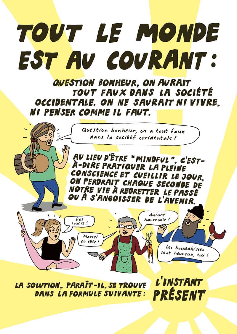 Liv Strömquist s’éloigne le temps d’un livre des thématiques de Les sentiments du prince Charles et de L’origine du monde, pour brosser un portrait assez cinglant de nos chancelantes démocraties occidentales. Si le sujet a changé, la verve de l’auteure suédoise n’a nullement perdu de son mordant : partant une fois de plus d’une galerie d’exemples bien choisis – où l’on croise banquiers, princesses, philosophes, P-DG de l’industrie pétrolière et écrivains libertariens – le propos de Liv Strömquist est toujours documenté, brillant et – avant tout – très drôle. Liv Strömquist nous livre un manifeste politique limpide et humaniste, à la fois analyse des ravages du néolibéralisme et exhortation à construire une société différente.