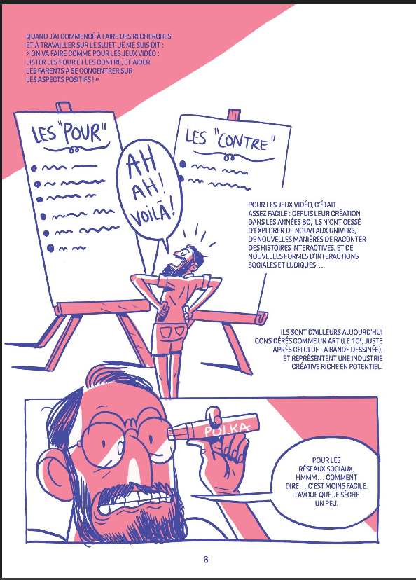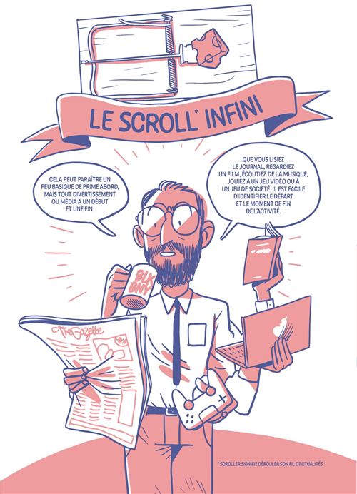 Je précise que je ne suis pas adepte de ces réseaux (n’ayant été que sur What’s App, jamais sur les autres – même si je les connais un peu). Même si je ne suis pas toujours d’accord avec l’auteur (je suis moins enthousiaste que lui par rapport à ces nouvelles technologies et préfère toujours avoir affaire à des êtres vivants et avoir un bouquin en mains), et si certains tics peuvent agacer (la narration est un peu « contaminée » par ces réseaux sociaux, avec un rythme un peu saccadé, et un « zapping » relatif), j’ai trouvé cette lecture intéressante, et recommandable. L’auteur dialogue ici avec sa « fille » d’une vingtaine d’années (je ne sais pas si c’est un personnage fictif – peu importe d’ailleurs !) et nous présente l’historique du développement des réseaux sociaux, mais aussi les pièges qu’ils nous tendent, leurs « techniques commerciales » agressives. Et surtout ses recommandations pour s’en protéger sont plutôt sensées et à suivre. Et ces recommandations sont aussi bien exposées, c’est didactique et agréable à lire (le dessin, assez simple et centré sur les personnages – l’auteur et sa fille essentiellement – est lui aussi simple, agréable et efficace). Un petit ouvrage à lire, alors que ces réseaux sociaux ont tendance à phagocyter nos vies. L’achat par des CDI ne serait pas inutile.