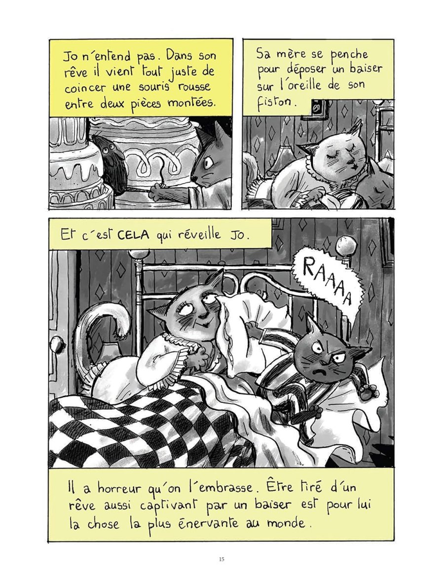 « Des baisers ! Toujours des baisers ! » hurle Jo. « Je les déteste, je n’en veux pas ! Des baisers pour dire bonjour, bonsoir et merci ! Des baisers humides et poisseux, toujours des baisers ! » Comment Madame Chattemite s’y prendra-t-elle désormais pour témoigner sa grande affection maternelle ?