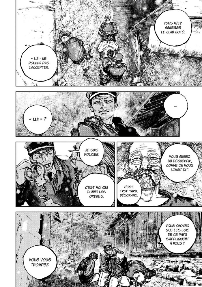 Un thriller passionnant comme je l'aime ! Le sujet de départ est pourtant du déjà vu: le policier avec un passé trouble qui se retrouve transféré dans un village qui cache un sombre secret et il va découvrir petit à petit la vérité. Bref, rien de nouveau au début, mais le scénario est bien fait et surprenant. En effet, je ne savais jamais ce qui allait se passer ensuite, j'ai vraiment ressenti de la tension tout le long de la série. Comme l'indique le titre, il va être question de cannibalisme. Un clan particulier du village est accusé de l'être et une des idées de génies de la série est de dissocier ce clan des autres villageois. Alors qu'on se met à penser qu'il y a seulement ce clan qui pose des problèmes, on va voir que les autres villageois qui se présentent comme des gentils sont aussi louches et du coup on se jamais si le héros peut faire confiance ou non aux autres personnages. Il y a une bonne ambiance paranoïa. Et ce clan qui au début semble être uniquement mauvais se révèle un peu plus complexe avec certains membres qui ont des motivations différentes. Il y a plusieurs sous-intrigues et tout ne tourne pas juste autour de 'est-ce que le policier va découvrir la vérité et battre les méchants'. Les mystères et les passées des personnages et du village sont bien distillés et il y a des éléments nouveaux à chaque tome. Évidemment, il y a quelques défauts dans cette série et cela porte principalement sur le dessin. Il y a deux membres du clan de cannibale qui se ressemble un peu et cela rends certaines scènes un peu confuse et comme c'est trop souvent le cas avec les mangas, les scènes de combats ne sont pas toujours facile à suivre. En tout cas, pour moi c'est un must si on aime les mangas thrillers.