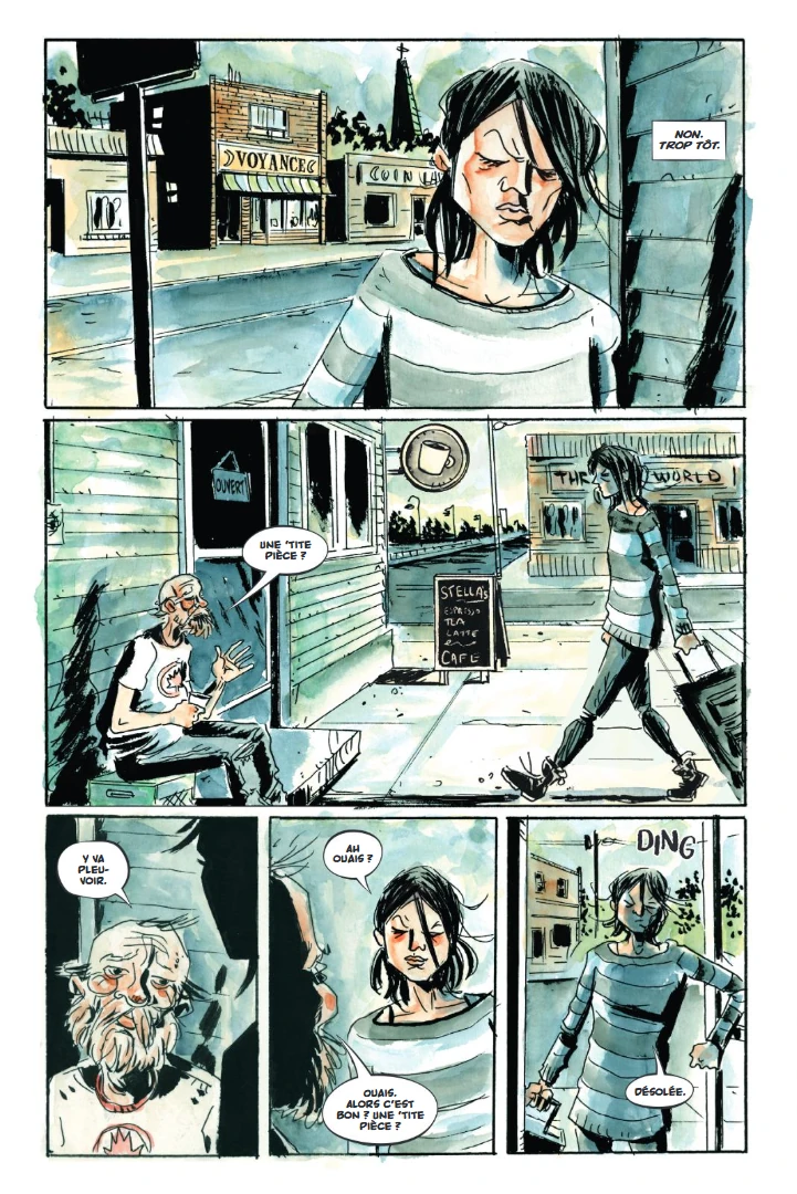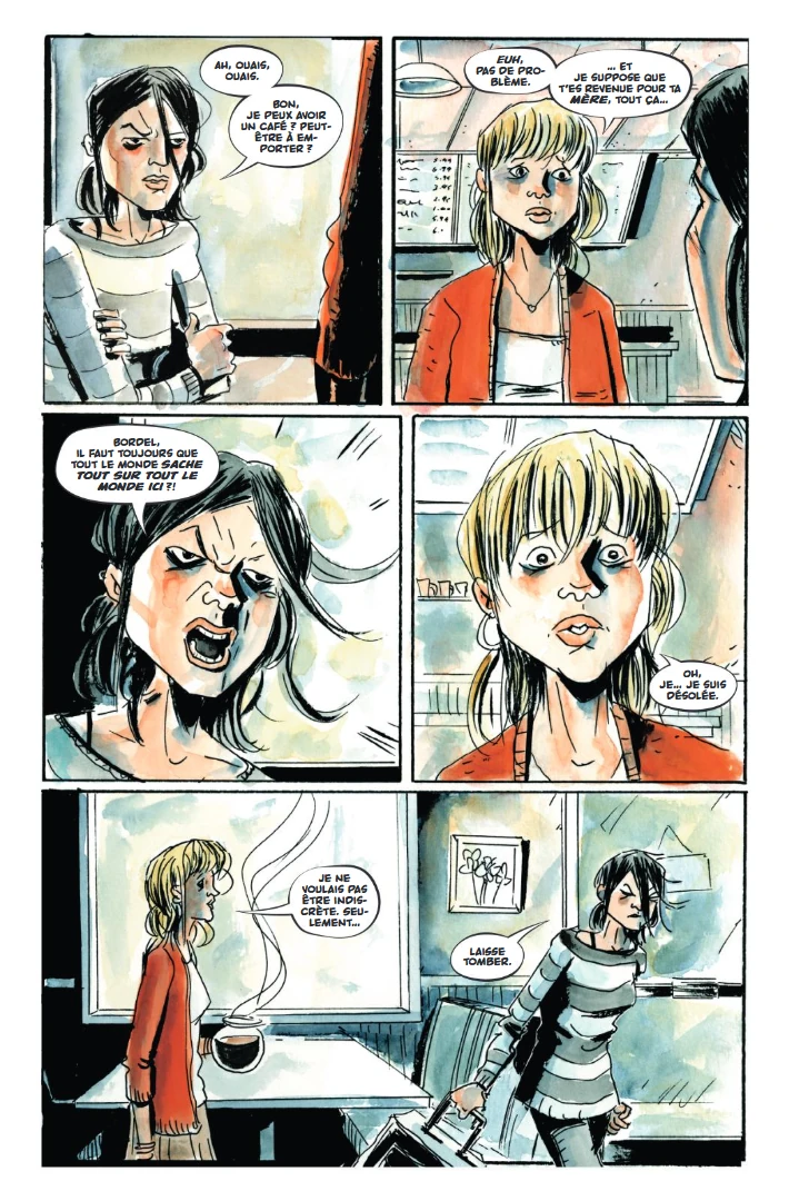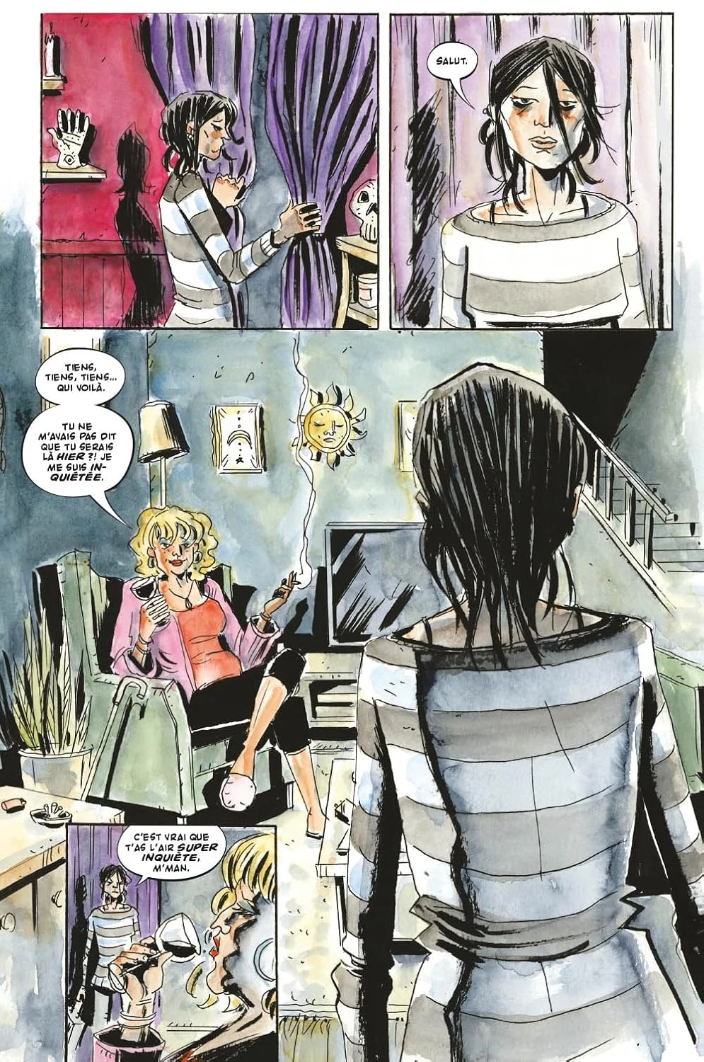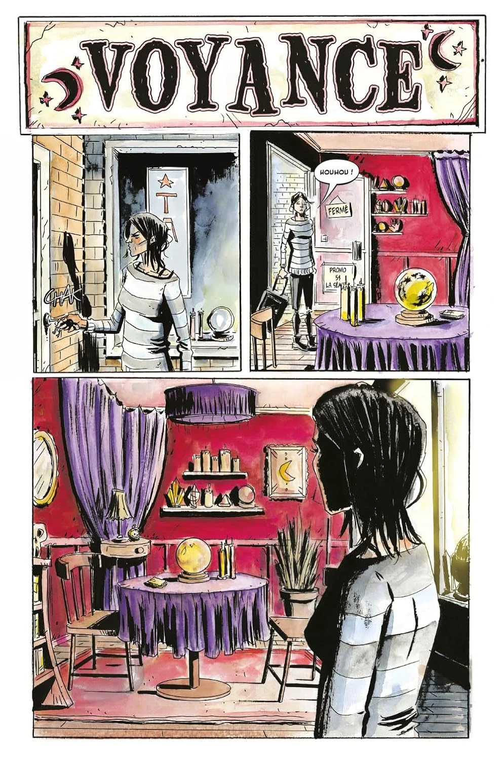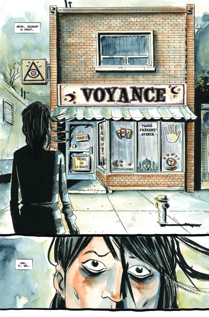Jeff Lemire réalise beaucoup de one-shot (Le Labyrinthe inachevé, Jack Joseph - Soudeur sous-marin ou encore Winter Road, pour ce citer que les plus populaires sur le site) mais aussi des séries « à rallonge », telles que Sweet Tooth, Phantom Road… et « Minor Arcana », la nouvelle « ongoing series » de l’auteur. Lemire nous ressert ses thèmes favoris : un bled paumé, une protagoniste torturée au passé chargé, et une bonne dose de fantastique, via la thématique de la lecture des cartes de tarot, élément central de l’histoire. Ce premier tome ne fait que poser les bases, nous présente les personnages et lance l’intrigue. Il est prenant au possible, je l’ai englouti d’une traite et j’attends impatiemment la suite. Le dernier chapitre (le comic book #5) propose un retour dans le passé intéressant, et un autre point de vue, celui du grand-père de la protagoniste. Pas grand-chose à dire sur le dessin, c’est du Lemire, j’adore. A priori il va se faire aider par Letizia Cardonici sur les tomes suivants, pour que ses nombreux projets en cours puissent avancer… je suis curieux de voir comment les deux styles vont de marier. Un excellent premier tome. Vivement la suite.
