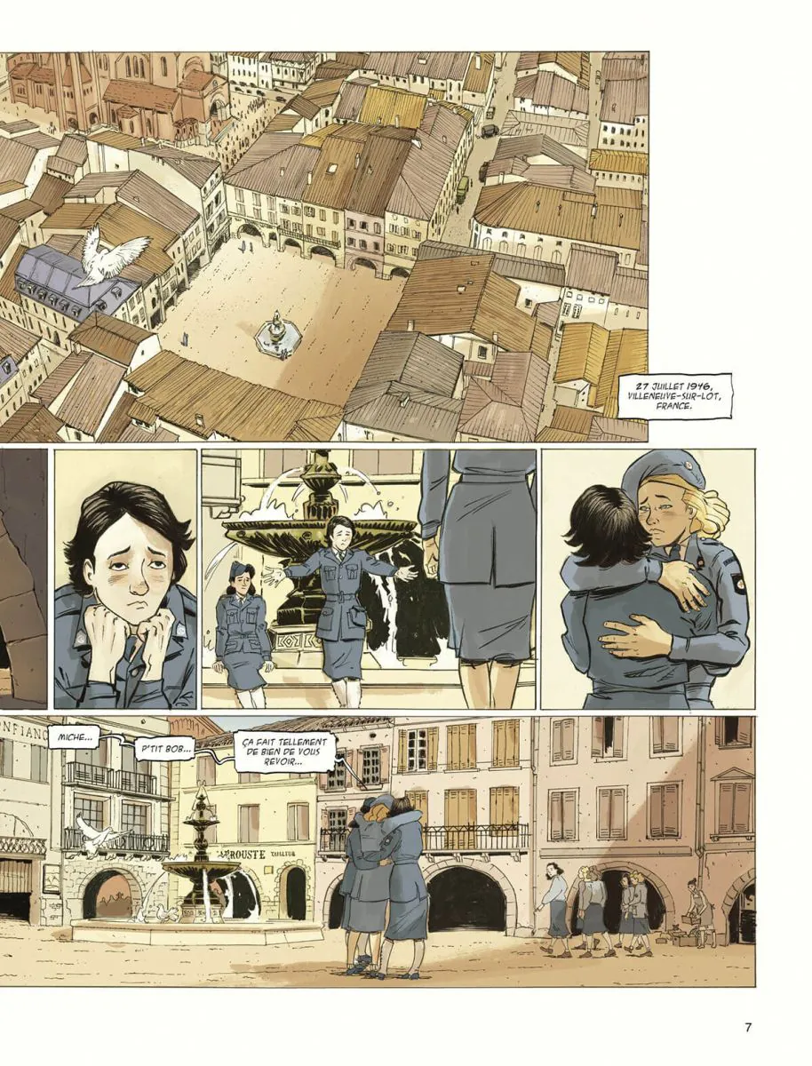 Par un arrêté du ministère des Prisonniers, Déportés, Réfugiés (PDR), la Croix-Rouge française mobilise en effet des équipes d'urgence (conductrices, infirmières, secouristes et simples bénévoles) pour participer au retour des Français libérés. Dans le même temps, elle déploie des délégations à l'étranger, en Allemagne, en Autriche et en Pologne, principalement, pour appuyer les missions de rapatriement créées par ce même ministère. Ainsi, infirmières, Infirmières pilotes secouristes de l'air (IPSA), assistantes sociales et conductrices-ambulancières de la Croix-Rouge française sont mises à disposition des armées. Madeleine Pauliac, quant à elle, est nommée médecin-chef de l'hôpital français de Varsovie et déléguée de la Croix-Rouge française en Pologne. Après les aventures de Madeleine Riffaud - grande résistante et engagée politique, femme de lettres et aventurière -, véritable joyaux de la collection « Aire Libre », la prestigieuse collection des éditions Dupuis accueille l'odyssée d'une autre Madeleine, celle de l'officier médecin Pauliac et de son groupe d'infirmières-ambulancières de l'Escadron bleu. Une oeuvre de la scénariste-romancière Virginie Ollagnier (Ils ont tué Oppenheimer, Nellie Bly) et du dessinateur Yan Le Pon qui adaptent le récit Madeleine Pauliac, l'insoumise de Philippe Maynial, son neveu.