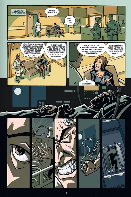 Sans avoir lu la série mère Invincible, devenue tout aussi culte que Walking Dead, je découvre ce spin off, édité par Delcourt en intégrale sur Wolf-man. Voilà un bon gros pavé de 300 pages + cahier graphique d'une vingtaine de pages tant affectionné par les éditeurs de comics, qui s'avale assez rapidement. Robert Kirkman sait y faire pour raconter des histoires, et même sans connaître le background de la série mère, je n'ai pas été perturbé dans ma lecture, tout cela se lit parfaitement indépendamment. Par contre, c'est le graphisme singulier de Jason Howard qui m'a surpris des les premières pages. Son trait d'encrage très large donne à son graphisme ce côté très dessin animé qui n'est pas vraiment ma came. J'ai fini par m'y faire, pris par le récit et l'histoire de Gary Hampton, ce riche homme d'affaire qui va devoir apprendre à vivre avec ce nouveau "pouvoir" : la lycanthropie. Les personnages sont plutôt bons et biens campés, amenant des retournements de situations biens pensés qui rythment parfaitement le récit. Alors, si le dessin de Jason Howard ne vous effraie pas, voici une série agréable qui donne très envie d'aller se pencher du côté de la série Invincible.