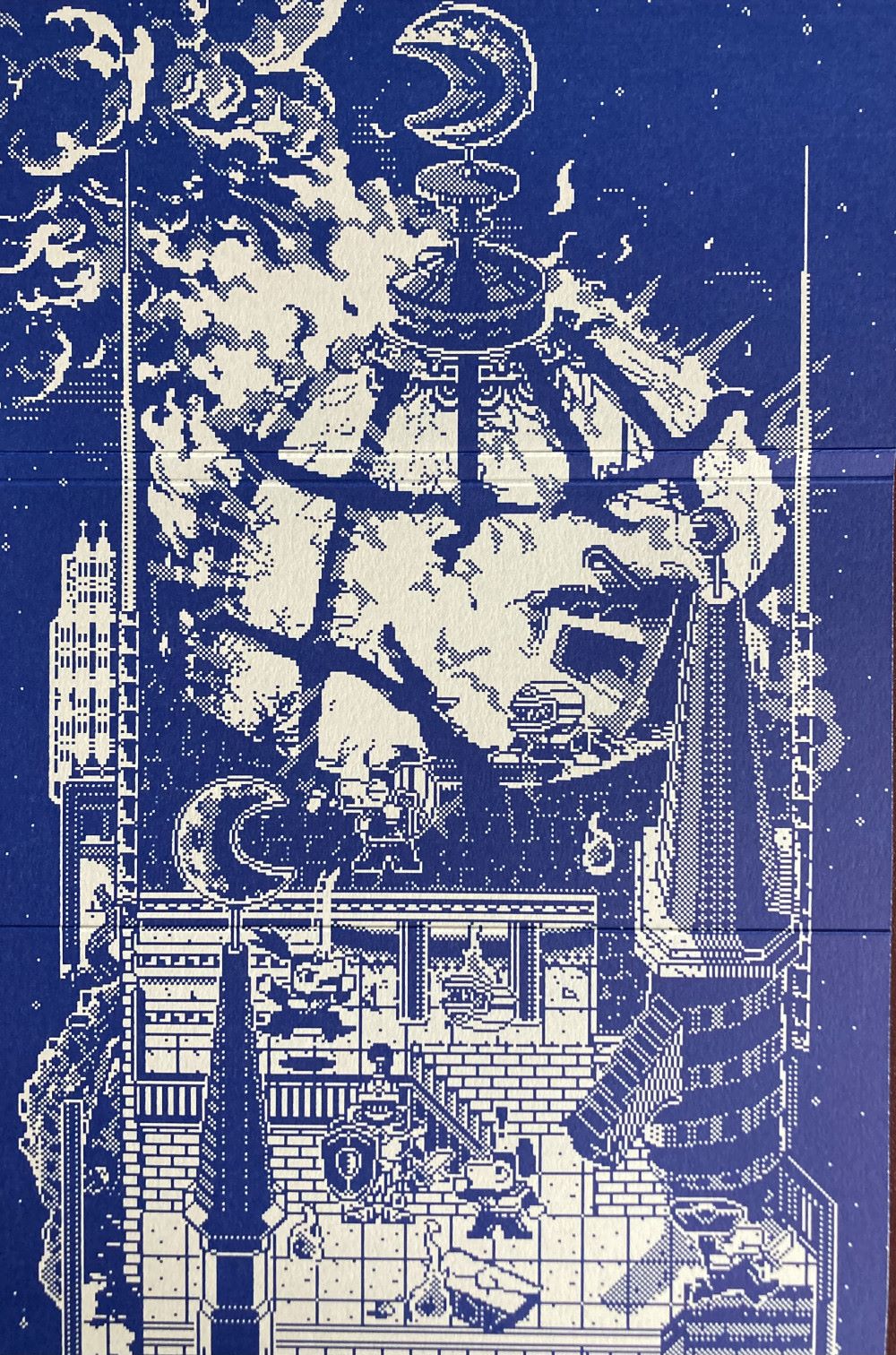 Une façade épique et muette, dessinée tout en pixels.