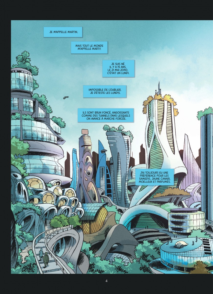 En 2050, après une mystérieuse Grande Bascule qui a profondément transformé le monde, Marty, ado un peu en décalage, reçoit de sa grand-mère une BD qu'elle a autoéditée spécialement pour lui. Elle y raconte l'enfance de son père, gamin à haut potentiel, ainsi que les difficultés d'une mère dépassée par cette différence. Le récit alterne entre ces deux époques : le passé, qui tient du témoignage sur ce que signifie élever un enfant HP dans notre société contemporaine, et le futur, où Marty réalise que ce père qu'il connaît mal lui ressemble beaucoup, mais a grandi dans un cadre bien moins accueillant pour la différence. Cette BD adapte le roman d'Isabelle Bary, elle-même mère d'un enfant HP. Et malgré un habillage laissant penser à un récit de science-fiction, l'histoire se concentre surtout sur la découverte du haut potentiel et sur ce que cela implique au quotidien pour l'enfant comme pour ses proches. Graphiquement, l'album entretient volontairement l'ambiguïté. La couverture et les premières planches évoquent un véritable récit d'anticipation avec ce futur proche et cette Grande Bascule en toile de fond. L'ensemble est lisible et soigné, porté par une mise en scène claire qui privilégie les personnages et les émotions plutôt que le spectaculaire. En conséquence, la dimension SF reste pour l'instant très décorative, plus suggérée qu'exploitée. Côté scénario, j'ai surtout retenu l'approche humaine et assez juste du haut potentiel. Ce n'est pas la première fois que je lis sur le sujet (Comme un oiseau dans un bocal en proposait déjà un témoignage), et, là encore, on est loin du cliché du petit génie brillant et arrogant. Le récit insiste plutôt sur la fatigue mentale, l'hypersensibilité, le sentiment de décalage permanent, ainsi que sur le désarroi des parents qui tâtonnent, oscillant entre amour, culpabilité et exaspération. Quelques pages documentaires viennent d'ailleurs conclure l'album pour expliciter encore davantage ces aspects. J'ai d'ailleurs été surpris d'y lire que jusqu'à 5% de la population française pouvait être considérée comme HP : ça me parait énorme. Le ton est sincère et doux-amer, mais le premier tome prend son temps pour poser son cadre. Une fois compris que la promesse de science-fiction restera secondaire, on constate une longue exposition, proche de l'état des lieux, sans véritable enjeu narratif immédiat. La Grande Bascule demeure floue, l'importance du contexte futuriste incertaine, et l'intrigue autour de Marty et de la BD de sa grand-mère progresse très lentement (au point que je me suis surpris à trouver qu'il mettait un temps fou à simplement la lire). Il en résulte un rythme un peu étale et un léger sentiment de surplace. Ce premier tome se lit agréablement et aborde son sujet avec tact et sincérité, mais il ressemble davantage à une mise en place qu'à une histoire pleinement lancée. Intéressant sur le fond, encore trop timide dans sa narration, j'attends le second tome pour voir si ce cadre futuriste et ce dispositif débouchent sur quelque chose de plus incarné.
