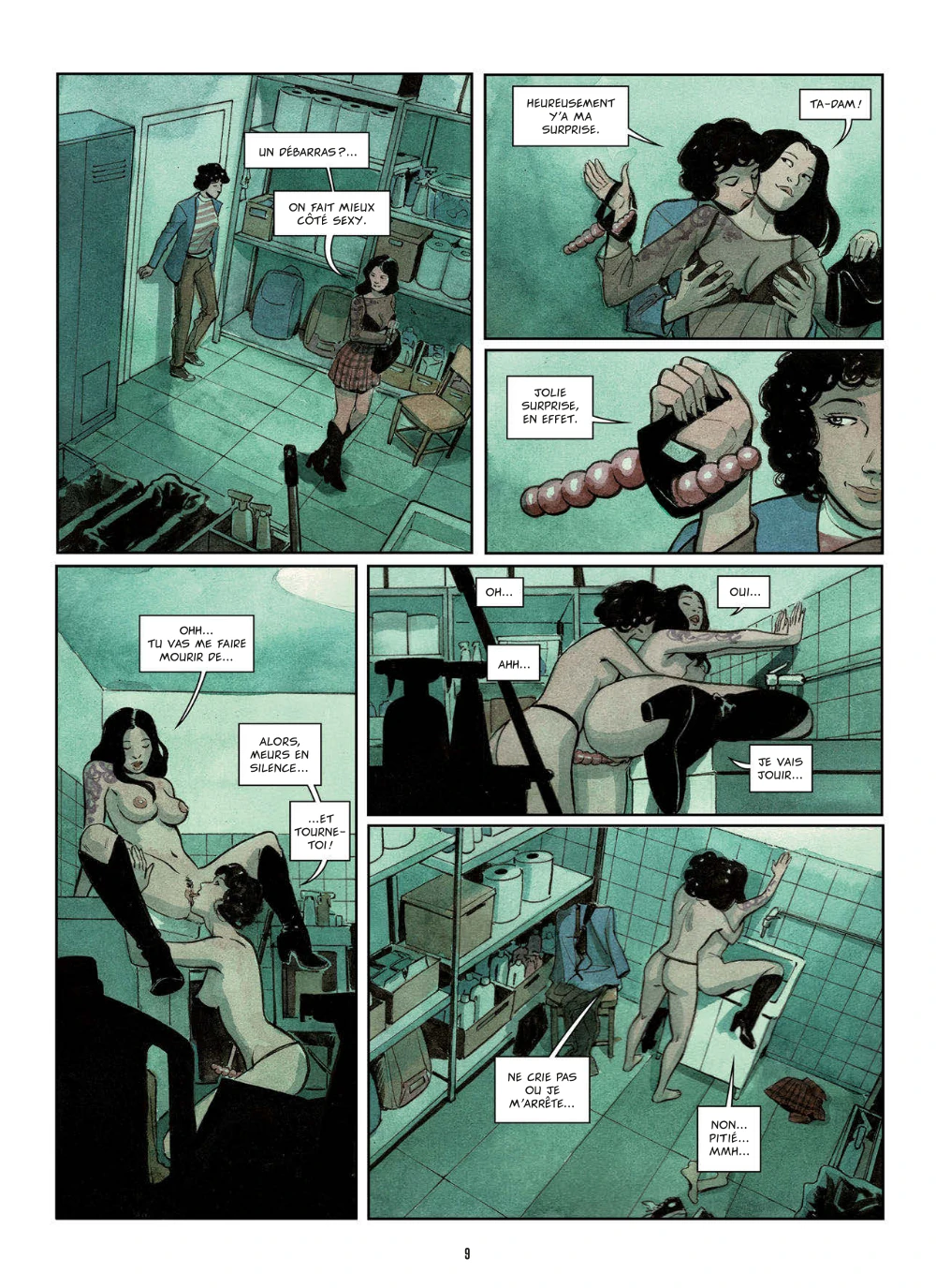 J’avais découvert il y a quelques temps Elena Ominetti sur plusieurs séries, mais elle n’était je crois qu’au dessin. Je la retrouve ici auteure complète, et c’est plutôt une belle découverte. En effet, c’est un album qui se distingue de la masse du genre par sa volonté d’élaborer un vrai scénario – même si bien sûr ça n’est pas non plus hyper développé – pour ne pas empiler uniquement les scènes de sexe. Une fois avalées quelques facilités (une grand-mère alitée devient le cobaye d’une expérience lui permettant de transférer son corps et son esprit dans ceux d’une jeune – et jolie – femme), nous sommes embarqués dans la (re)découverte de la sexualité par une vieille jeune femme passée à côté de sa vie, malmenée par un mari possessif : l’occasion de ne pas avoir de regrets ! En parallèle, les histoires d’amour lesbien de la petite fille… C’est un sujet sur lequel j’aurais bien imaginé voir Axel travailler – tout à fait le genre de récit qu’il aurait pu développer. Mais Ominetti s’en sort bien, nous présente quelque chose de plaisant. Les scènes de sexe sont sensuelles, bien rendues, son trait est agréable. Les éditions Tabou ont ici une auteure à suivre…