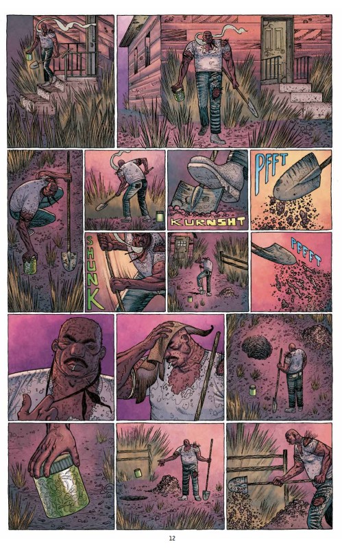 Un chercheur un peu – beaucoup – zarbi, sorte de mixe entre les Frankenstein et le docteur Moreau, bricole des êtres improbables à partir de bestioles que lui ramène son pote, le héros de l’histoire (au passage, le bestiaire est assez barré). Le héros donc, qui cherche à éviter une bande mafieuse à qui il doit des sous, à se rabibocher avec son ex et son gamin. Mais surtout qui cherche une rédemption, en libérant une créature de son pote chercheur fou, ce qui va entrainer leur brouille et quelques violences. C’est rythmé, parfois un peu trashouille. Mais c’est aussi vite lu, un peu creux, l’univers étrange est finalement eu développé. J’en suis en tout cas sorti avec un ressenti mitigé. Le dessin est original, étrange. Avec des corps aux proportions surprenantes, comme les décors d’ailleurs, où proportions, perspectives, ne sont pas toujours « habituelles ». Un univers relativement original, mais au final le sentiment de n’avoir lu qu’une ébauche, quelques idées foutraques jetées sur le papier. Note réelle 2,5/5.