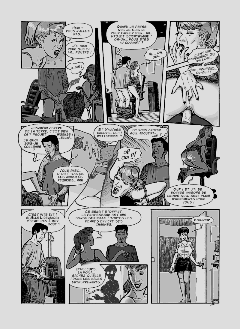 À la différence près que, sur les 160 pages délirantes de cette somme, on y fornique à qui mieux mieux. On y copule à l'intérieur de la capsule qui s'enfonce dans les profondeurs de la Terre. Sur les plages d'un continent perdu. Sur l'île de Lilliput ou encore dans le monde des Amazones.