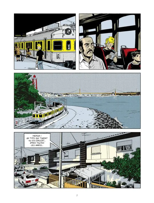 Ce qui m'a attiré vers cette BD, c'est le fait qu'elle retrace la vie pour le moins étonnante du chanteur d'un obscur groupe de rock bordelais des années 80, forcément culte, qui, en ce qui me concerne, était jusqu'à présent complètement inconnu au bataillon. Il n'en fallu pas davantage pour me convaincre de repartir avec la chose sous le bras. Et c'est pas mal. Le dessin est plutôt cool, rappelant un peu le travail de Mezzo, à savoir un traitement "à l'américaine", y compris dans le traitement des couleurs. Le scénar est fluide même s'il manque globalement de souffle. Et puis perso, j'aurais aimé que ça cause un peu plus de musique. Je ne sais pas au juste ce que j'attendais, mais cette BD est vraiment centrée sur Gilles Bertin, le braquage de la Brinks, et son exil au Portugal. Le lecteur taquin fera à raison remarquer qu'en cela le titre ne trompe pas... Oui oui, on tient là une bonne BD, un brin linéaire et convenue, mais qui offre l'avantage de raconter une histoire pas banale tout en exhumant un petit morceau de rock'n'roll.