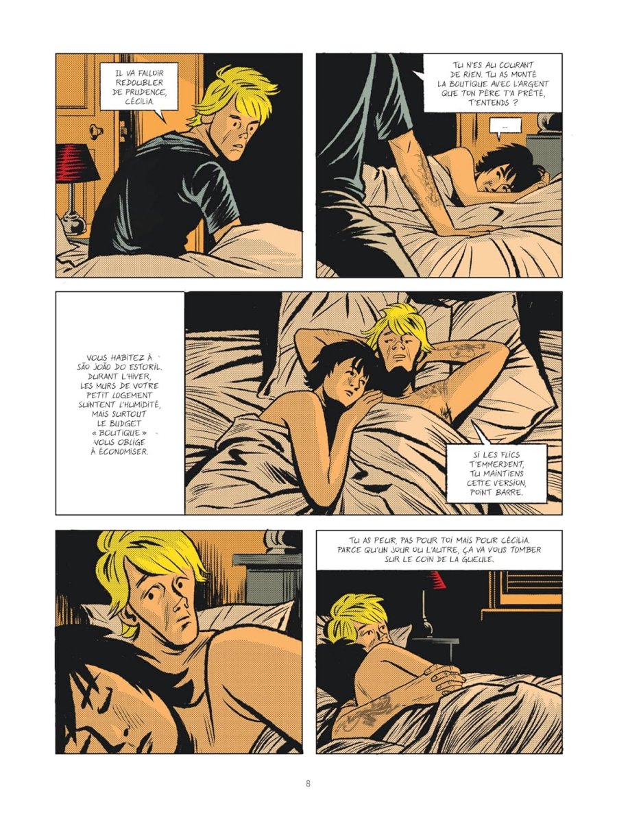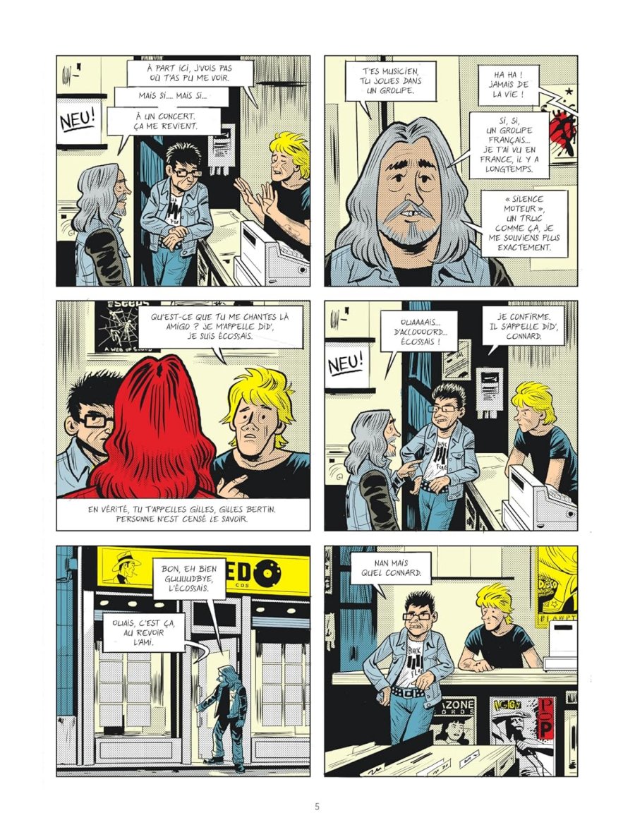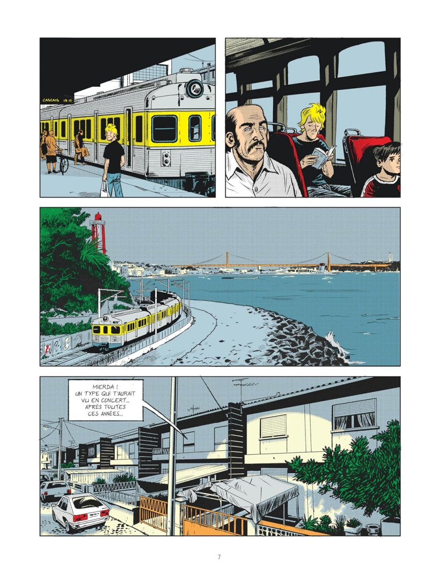 Ce qui m'a attiré vers cette BD, c'est le fait qu'elle retrace la vie pour le moins étonnante du chanteur d'un obscur groupe de rock bordelais des années 80, forcément culte, qui, en ce qui me concerne, était jusqu'à présent complètement inconnu au bataillon. Il n'en fallu pas davantage pour me convaincre de repartir avec la chose sous le bras. Et c'est pas mal. Le dessin est plutôt cool, rappelant un peu le travail de Mezzo, à savoir un traitement "à l'américaine", y compris dans le traitement des couleurs. Le scénar est fluide même s'il manque globalement de souffle. Et puis perso, j'aurais aimé que ça cause un peu plus de musique. Je ne sais pas au juste ce que j'attendais, mais cette BD est vraiment centrée sur Gilles Bertin, le braquage de la Brinks, et son exil au Portugal. Le lecteur taquin fera à raison remarquer qu'en cela le titre ne trompe pas... Mais je ne sais pas, peut-être à cause de la personnalité insaisissable du chanteur... Ouais, je suis resté un peu sur ma faim... On tient là une bonne BD, un brin linéaire et convenue, mais qui offre l'avantage de raconter une histoire pas banale tout en exhumant un petit morceau de rock'n'roll.