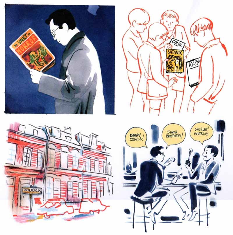 « Instants d’années » est l’ouvrage qui accompagne l’exposition « L’Aventure éditoriale – Delcourt, 40 ans au rythme du 9e art », qui a lieu du 29 janvier au 15 novembre à la Cité internationale de la bande dessinée et de l’image d’Angoulême. Celle-ci devait inaugurer le FIBD, qui par les malheureuses circonstances que l’on connaît, a été annulé cette année. Il faut voir le livre davantage comme un objet souvenir, une fantaisie autopromotionnelle sans doute, un « beau livre » pourquoi pas, que comme une véritable bande dessinée, le seul critère étant le format du gaufrier. Le choix éditorial s’est porté sur un leporello muet pouvant se lire un peu dans tous les sens, comme un assemblage de dessins parfois esquissés, qui semblent avoir été griffonnés sur le coin d’une table, avec toute la sensibilité et le talent d’Alfred que l’on connaît bien à travers des œuvres comme Pourquoi j'ai tué Pierre, Come Prima, deux albums récompensés par des Fauves à Angoulême, ou encore Le Désespoir du Singe. Guy Delcourt s’est fait plaisir avec cette autocélébration et il a bien eu raison. La bande dessinée ne serait pas tout à fait ce qu’elle est sans cet homme qui a transformé sa petite entreprise en machine de guerre incontournable parmi des éditeurs installés depuis plus longtemps dans le paysage, tels Casterman ou Dargaud. Et tout cela grâce à sa passion pour le médium, sa rigueur et son dynamisme, son éclectisme et sa curiosité, sa capacité à allier le populaire et l’avant-garde, et sans doute aussi un certain flair pour détecter les auteurs les plus talentueux. Si malgré les apparences, la chronologie est respectée, les images, bien souvent dépourvues de texte ou en mode « private joke », ne parleront pas forcément à tout le monde. Pour en savoir plus, il faudra se référer aux notes à l’arrière de la couverture. Il y a évidemment beaucoup de clins d’œil et de références à des instants marquants, des fiestas joyeuses ou des œuvres iconiques — La Bande à Renaud (Renaud - BD d'enfer) (son premier succès !), les « Donjon », De Cape et de Crocs — qui ont jalonné le parcours de l’éditeur, et Alfred en sait quelque chose puisque son tout premier album, Abraxas, a été publié chez Delcourt en 2000, soit seulement 14 ans après la création de la maison. On regrettera cependant le côté un brin foutraque du projet pour la partie textuelle, où le lien n’est pas fait entre les images et les notes explicatives : celles-ci sont bien numérotées mais pas les dessins… Il faudra donc être quelque peu motivé pour leur lecture. On aurait également apprécié un découpage chronologique plus explicite et une taille de police augmentée. Cela ne devrait pas empêcher les collectionneurs de curiosités et les nostalgiques d’apprécier.