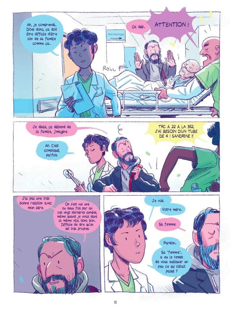 Cette BD raconte l'AVC du père du personnage et les conséquences sur sa vie, notamment le fait qu'il n'arrive désormais qu'à dire une petite poignée de mots notamment "merveilleux", mot qu'il ne semblait pas employer beaucoup auparavant. Cookie Kalkaire raconte surtout une histoire de famille, la sienne, avec tous les bouleversements qu'elle connut suite à cet évènement. Cookie Kalkaire est alors au Canada avec sa compagne, son père est remariée, il a une autre fille encore mineure et son ancienne femme ne lui parle plus. Désormais, le père est bloqué sur des mots, a du mal à bouger ses membres et ne peut plus s'exprimer pleinement. Commence le travail de rééducation et la famille doit accepter tout cela. La BD m'a fait penser à une autre, Silence radio - 36 mois pour me relever d’un AVC, mais avec le point de vue de la famille plutôt que celle de l'intéressé ici. Et on sent les différentes révolutions que cela opère dans la famille, entre la sœur qui grandit d'un coup et trop vite, la réconciliation inattendue avec l'ex-femme et les mouvements de chacun pour se rapprocher. Les tensions débarquent aussi, et la vie avance. La résolution ne sera pas finale, c'est une tranche de vie avec les bouleversements d'un AVC, on finit sur la vie qui continue et certaines choses résolues, d'autres non. La BD s'inscrit aussi sur le temps long, plusieurs années passent avec les chapitres. Au final, c'est une BD sur la famille dans le temps long, une sorte de réconciliation avec le père. Le dessin de Cookie Kalkaire est assez bon, j'avais noté son travail avec Pénis de table et il est identique ici. Ses touches de couleurs sont maitrisés, le dessin est très expressif et il arrive à faire des passages drôles et d'autres tendres sans jamais exagérer de manière outrancière. C'est une BD agréable à lire, au sujet qui intéressera du monde et que je conseille. Agréable, quoi !