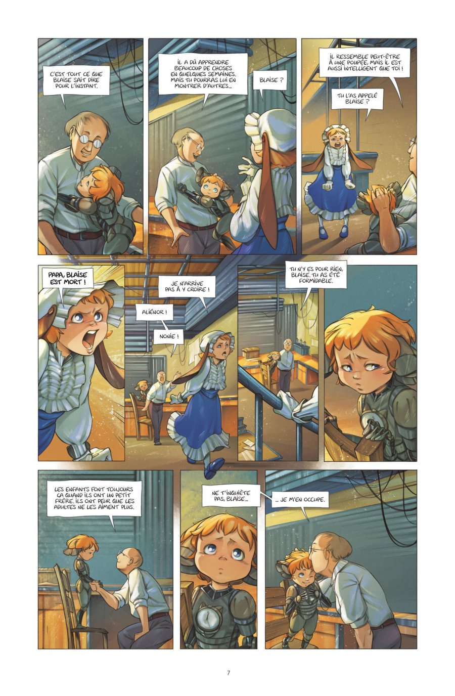 Pour son anniversaire, Aliénor reçoit un cadeau particulier de la part de son père inventeur : un petit frère au corps de métal. Malade depuis des années, la jeune fille espérait autre chose. Surtout que le jouet se nomme Blaise, comme le petit frère qu'elle n'a jamais connu. Et que son père prétend qu’il a une âme… Flanquée du garçonnet qui l'agace, Aliénor va un jour découvrir la vérité sur sa soi-disant maladie. Les deux enfants fuient alors dans les bois, où fantômes, goules et secrets les attendent...