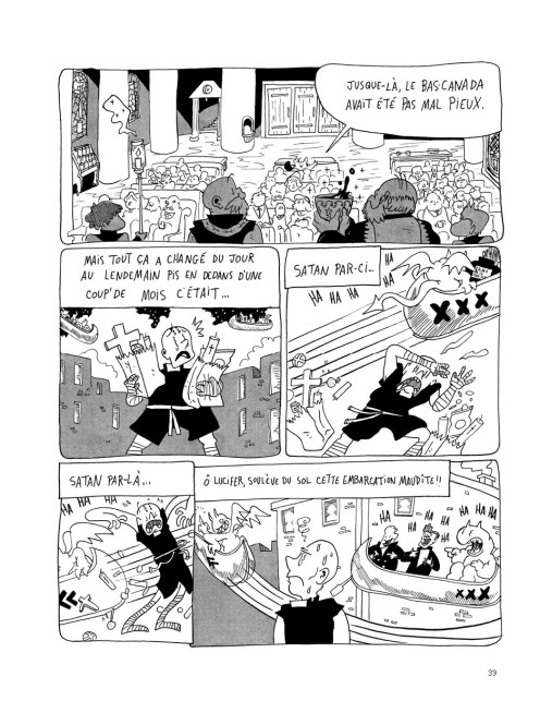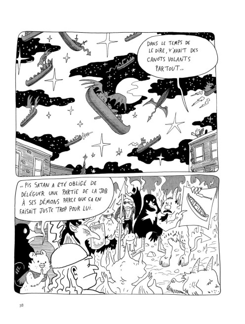 C’est que le Diable en personne leur a demandé d’écrire un livre en hommage à sa grandeur, voyez-vous. Ça fait que nos vaillants auteurs ont pris la première légende à portée de main et ils ont fait ce qu’ils font de mieux: rajouter des jokes de Mario Kart pis demander à un castor de raconter l’histoire à leur place! Attention! Ça va swinger en ti-père dans votre Bas-Canada! Texte: L'éditeur