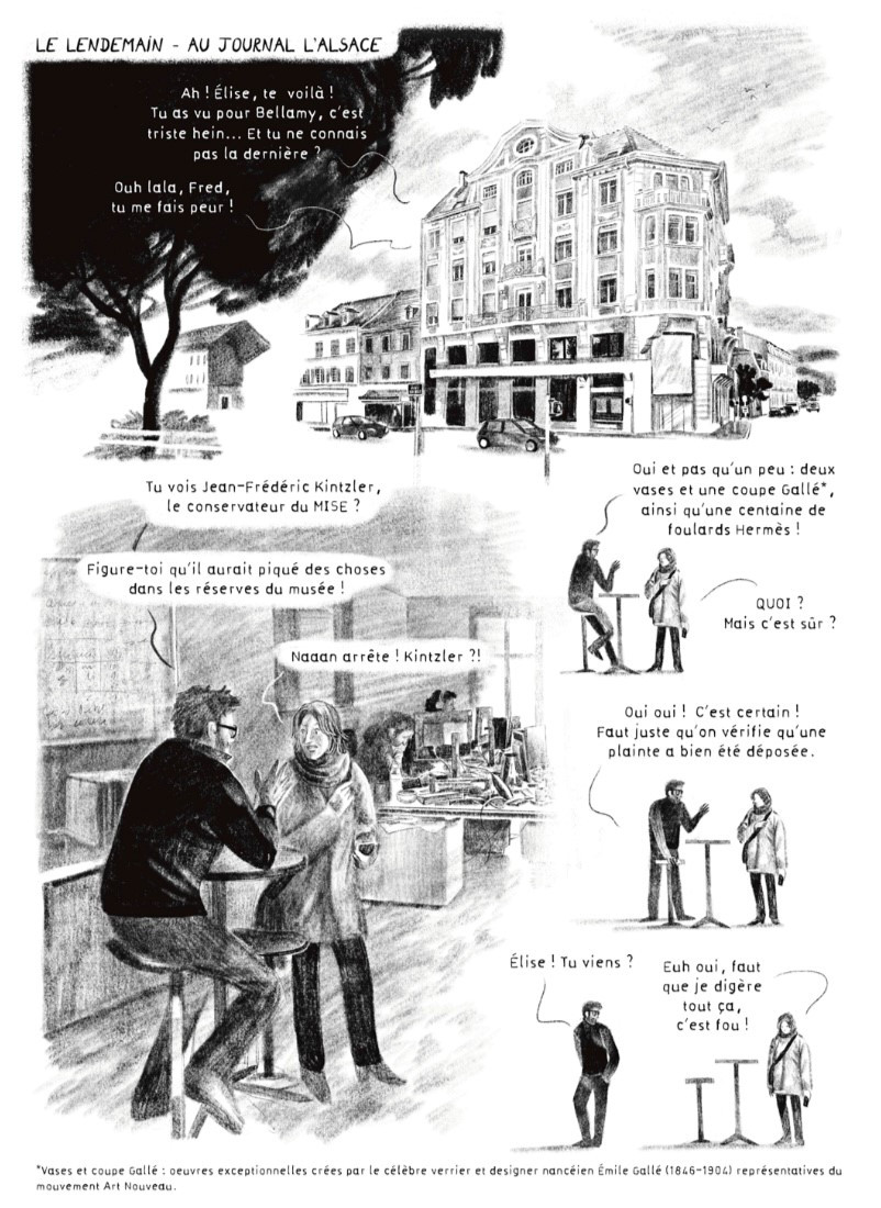 Cette BD était partout à sa sortie ! En tout cas à Mulhouse où j'habite, bien sur. Parce que pour une fois qu'on parle de chez nous, en plus pour un scandale public de grande ampleur ! On a nos fiertés, dans le coin ... Cette histoire est sans doute moins connu du public extérieur à notre bonne cité, mais elle a fait son petit scandale. En résumé, c'est le pillage d'un musée et une collection complète de motifs de tissus assez inestimables qui faisaient la fierté d'un musée de la ville, celui de l'impression sur étoffes. L'histoire s'étale sur des années, avec un pillage organisé à l'interne par divers acteurs et pratiquement au vu de tous, avant une mort accidentelle suspecte qui lança l'affaire au grand public. La BD essaye de retracer les grandes lignes de toute cette affaire, en remontant aux années 80 et l'introduction des acteurs dans le musée. On comprend vite que c'est complexe, le musée n'étant pas un musée nationale mais une collection gérée par une association en lien avec des entreprises. Bref, un petit sac de nœud qui va aboutir à une désorganisation interne chaotique débouchant au final sur un pillage massif. C'est une histoire triste, une histoire presque banale de personne de pouvoir se servant dans la caisse pour son train de vie personnelle. La Bd est assez didactique pour qu'on comprenne à la fois le bordel de l'organisation et la façon dont ces collections sont achetées, gérées et surtout pillées sans vergogne, le tout entre argent public et privé, intérêt particulier et notion de biens communs. Le résultat est une BD assez linéaire, presque trop sage par moment et qui ne déborde pas de son cadre strict. J'aurais apprécié un peu plus d'à-côté, notamment les considérations sur les questions de ce qu'on laisse comme marge de manœuvre dans ces espaces peu surveillés. De même, la Bd met en lumière les complexités pour retrouver des œuvres uniques dans un marché de l'art qui semble s'en ficher complètement de l'origine de ses ventes. Un état de fait qui permet des vols comme celui qui touchera notre cher musée ... La BD a un dessin sympathique, en noir et blanc assez bien fait. J'ai pris plaisir à reconnaitre les lieux que je connais (d'ailleurs j'habite juste en face du dessin d'une des cases !), et globalement la lecture est fluide et intéressante. Un peu plus n'aurait pas été de trop, à mon gout, mais en l'état la BD donne à réfléchir à ces musées que l'on délaisse parfois trop, laissant prospérer des marchés parallèles dont l'impact est malheureusement énorme ...