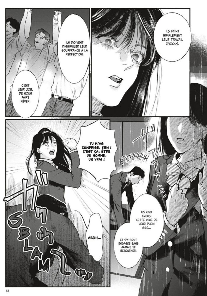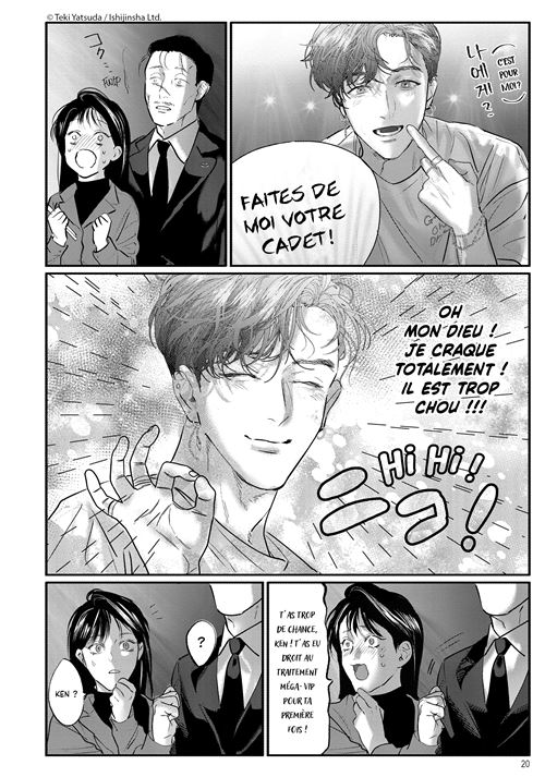 Un autre manga avec une idée de départ bien débile; un dangereux yazuka devint fan d'un chanteur de K-Pop et cela va bien sur apporter des situations humoristiques. Ayant déjà lu plusieurs mangas du même genre j'étais en terrain connu: humour basé sur le contracte entre le dessin réaliste et les personnages qui disent ou font des trucs débiles, quiproquos, personnage sérieux mise dans des situations délirantes.....Parfois ce genre d'humour fonctionne sur moi, mais ici je n'ai pas trop accroché. J'ai souris quelques fois au début, mais très vite j'ai fini par trouver que c'était répétitif alors que seulement le premier tome est sorti ! Il faut dire que j'ai souvent trouvé le dessin un peu moyen lorsqu'il s'agissait de donner des expressions rigolotes aux personnages Ce qui ne doit pas aider est que je ne suis pas du tout fan de K-Pop. Les personnages ne sont pas particulièrement attachants et les péripéties m'ont vite laissé indifférent. Un gros bof.