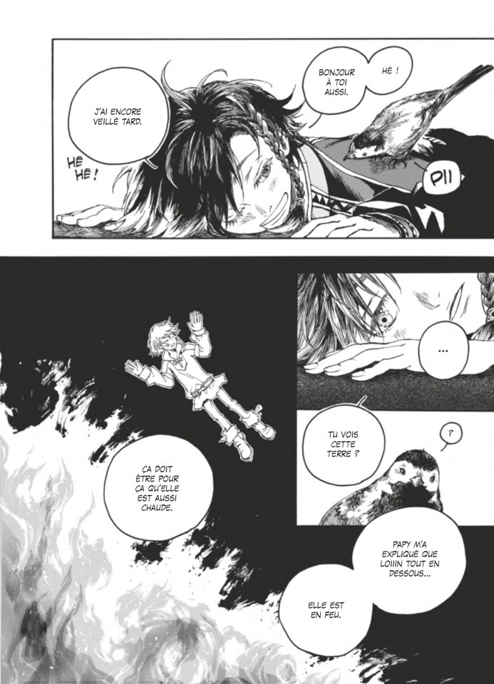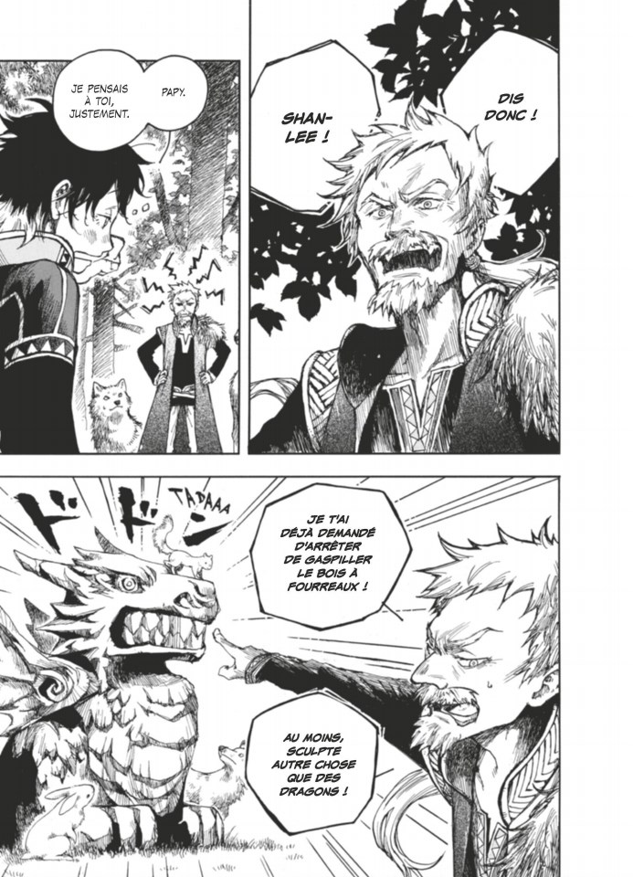 Bon. Bon, bon, bon. Comme (trop) souvent, lors des courses, je craque et me permet un petit achat impulsif, une petite lecture à l'aveugle. Ici, je suis tombée sur le premier tome d'une série et même si le postulat et le dessin ne me faisaient pas miroiter une création révolutionnaire je me suis permise de l'acheter me disant qu'après tout ce n'était qu'un seul tome et que cela ne serait pas si cher que cela - on pourrait croire à ce genre de réflexion que je peux me permettre de jeter de l'argent dans n'importe quoi mais pas du tout, je suis juste une abrutie (ne faites pas ça chez vous les enfants). Bon, en effet, ce premier tome ne m'a pas du tout convaincue et je ne compte pas continuer l'aventure (encore de l'argent bien dépensé ma p'tite Deretaline…). J'ai vraiment essayé de donner sa chance à l'album, le dessin (sans être, là encore, révolutionnaire) me semblait un minimum travaillé, l'incipit (bien que cliché) était suffisamment simple pour permettre à l'auteur-ice de partir dans la direction de son choix (aventure épique, comédie d'action, …), malheureusement le résultat est cliché au possible. J'ai vraiment eu l'impression de suivre le speedrun d'un scénario, on passe d'instant cliché en instant cliché sans remoud, sans surprise ou prise de risque, les instants comiques/légers comme les instants réflexifs ont parfois à peine une case allouée, tout s'enchaîne bien trop vite pour développer un semblant d'attachement au moindre des personnages qui ne seront de toute façon jamais étoffés au delà du post-it résumant leurs archétypes, le texte ne recèle aucune malice ou naturel, … Bref, c'est pas que c'est nul à proprement parlé, c'est surtout que c'est sacrément oubliable. La protagoniste orpheline se révèle être hors du commun (ici elle a l'âme d'un dragon enfermé en elle), un mythe fondateur aux versions pas toujours cohérentes semble cacher une vérité aujourd'hui oubliée, des personnages qui en savent beaucoup plus que nous font de la rétention d'information artificielle, notre fougueuse héroïne a de beaux yeux verrons pour se distinguer de la plèbe, que d'originalité mes ami-e-s. Pas mauvais, en soi, même si le récit est tout sauf inventif il y a toujours moyen que le tout s'améliore à l'avenir, mais sachant qu'un premier tome (comme un premier chapitre, un premier épisode ou tout autre forme d'introduction narrative) ça a quand-même pour but, au delà d'instaurer et de lancer l'intrigue, de capter l'attention des lecteur-ice-s/spectateur-ice-s et de présenter un minimum ses talents narratifs, quand je tombe sur une ouverture si plate, si oubliable, que l'auteur-ice iel même n'a pas eu l'air "habité-e" par son projet, j'ai envie de dire que la suite de la série a tout de même peu de chance de se révéler surprenamment bonne. Encore une fois pas mauvais, mais pas bon à mes yeux pour autant.