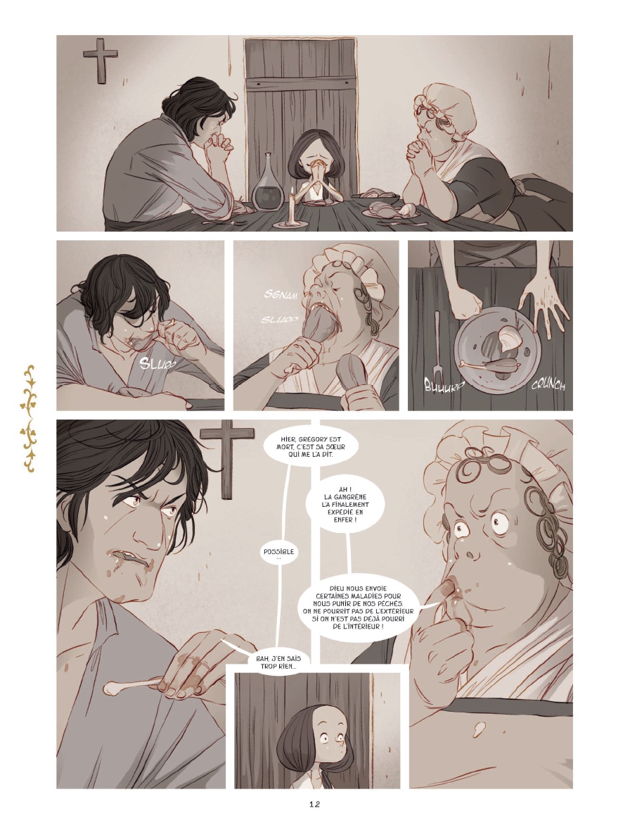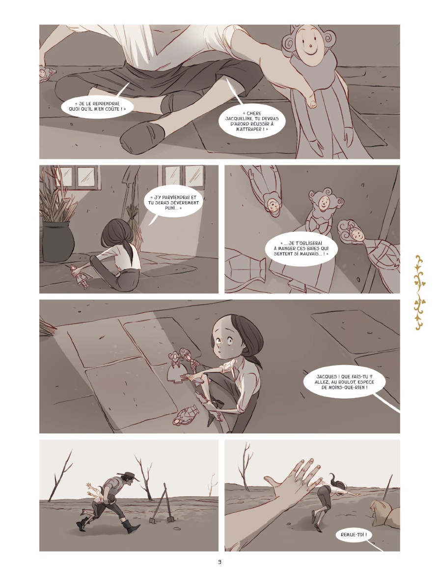 Dans la campagne du XVIIIe siècle, Jacques grandit sous l’autorité de parents violents et bigots. Pour échapper à cette réalité étouffante, il se réfugie dans son imaginaire, où il devient Jacqueline, une petite reine entourée d’une cour de joyeux drilles. Ensemble, ils se lancent dans une quête symbolique, celle d’une robe d’or censée permettre à chacun de devenir ce qu’il souhaite être, tandis que, en parallèle, la vie réelle de Jacques continue de suivre un chemin beaucoup plus sombre. Le dessin est très beau. Le trait est délicat, expressif, et les couleurs jouent un rôle essentiel dans la narration, opposant un monde réel terne et gris à un univers imaginaire foisonnant et lumineux. Cette dualité fonctionne bien et renforce l’attachement aux personnages, qu’il s’agisse de Jacques ou de toute cette galerie de figures étranges et touchantes qui peuplent son monde intérieur. Les dialogues, souvent empreints de douceur et de bienveillance dans la partie onirique, participent aussi à cet attachement. Le récit aborde des thèmes forts et dans l’air du temps, comme la maltraitance, le rejet de la différence, la construction de l’identité de genre ou encore le refuge que peut représenter l’imaginaire face à un monde hostile. La manière dont les personnages rencontrés au fil de la quête font écho à des réalités plus concrètes est intéressante, tout comme ce jeu constant entre rêve et réalité qui finit par les faire se rejoindre. Il y a un petit côté Magicien d'Oz dans la manière dont le monde de fantaisie agit comme un miroir déformé du réel. Je suis un peu plus réservé sur le traitement global de l’histoire. Le récit paraît assez manichéen, avec des parents présentés comme ignobles du début à la fin, sans nuance, et une accumulation de situations tragiques qui finit par donner un sentiment d’insistance. La conclusion, très sombre, où tout bascule dans une issue dramatique pour l’ensemble des personnages, m’a semblé appuyer un peu trop fortement son propos. Cela manque à mes yeux de subtilité et de justesse dans la mesure, comme si l’œuvre cherchait avant tout à marquer les esprits plutôt qu’à réellement nuancer son discours. Cela donne une fable visuellement très réussie, touchante par moments et portée par de belles intentions, mais dont l’écriture m’a semblé davantage relever d’un registre young adult que d’un récit véritablement mature, faute de nuances dans ses personnages et dans son traitement de la tragédie. Pour ce public, l’ouvrage reste cependant très efficace et saura sans doute toucher un grand nombre de lectrices et de lecteurs.