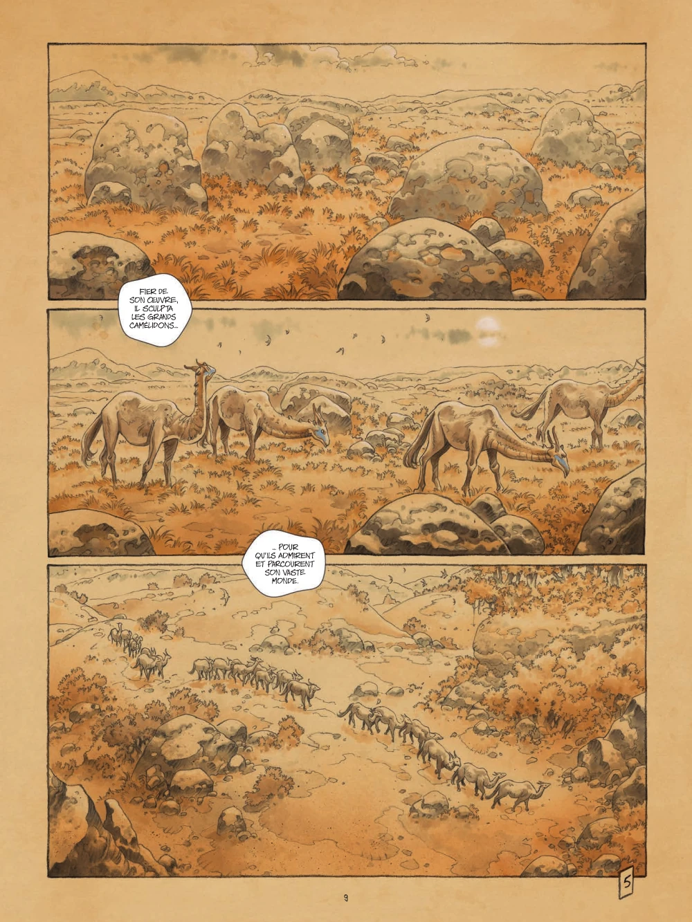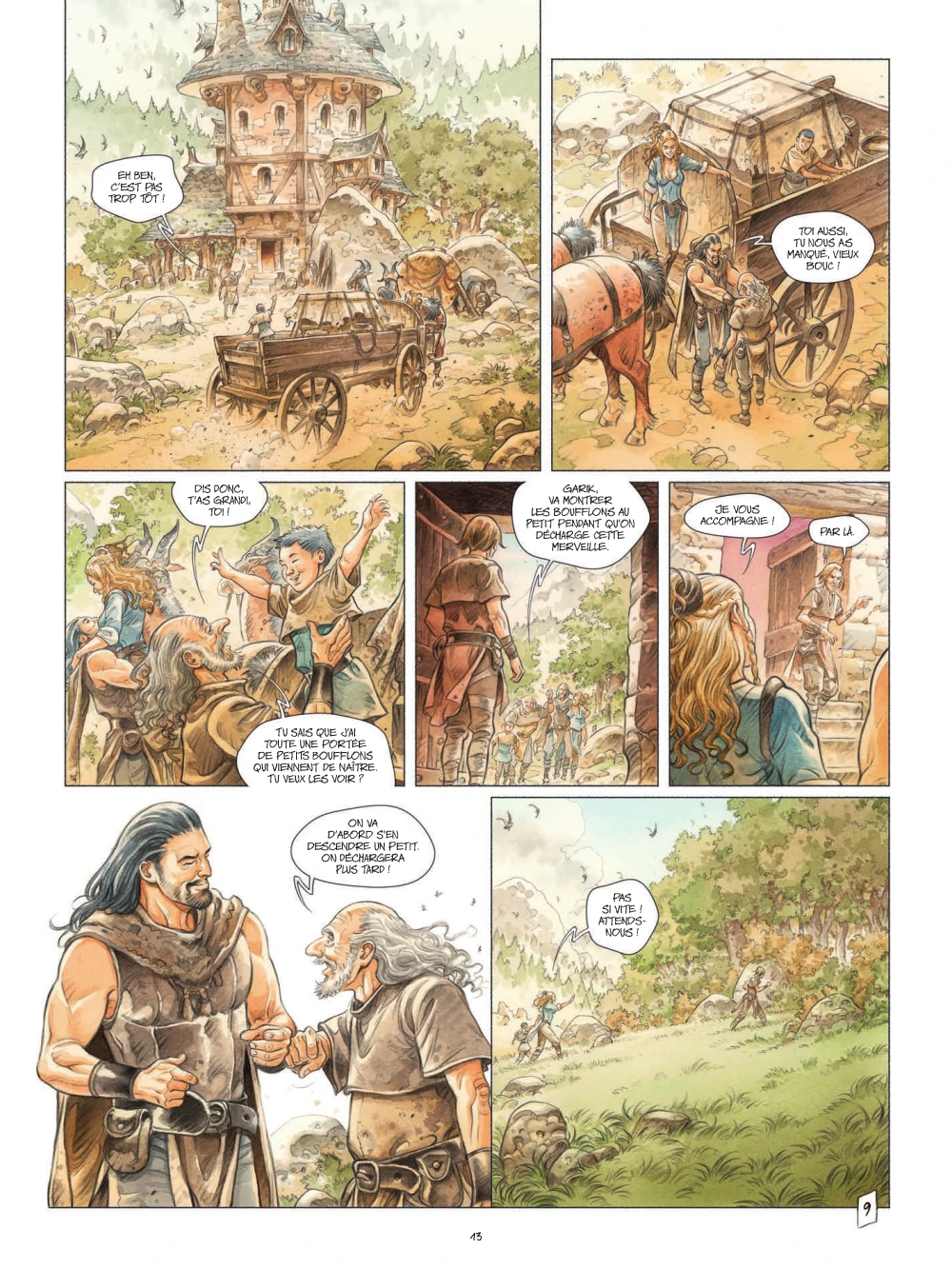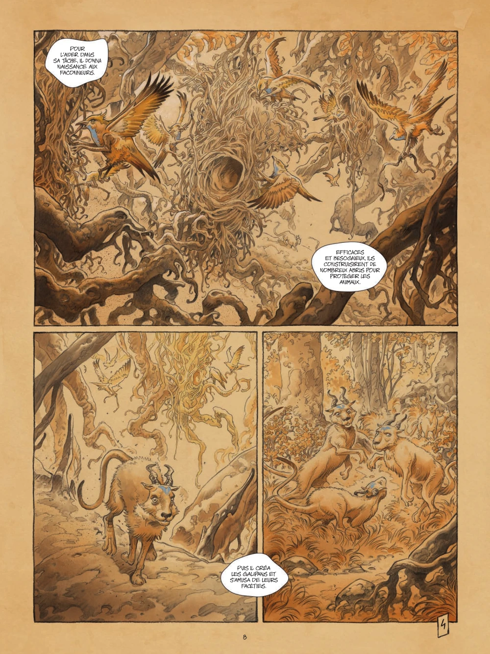 J'adore le travail graphique de Grun sur La Conjuration d'Opale. J'aime beaucoup le gap qu'il a franchi avec On Mars, scénarisé par Runberg. Je le retrouve ici, sur un scénario imaginé par sa compagne Laurine Clin, dans une ambiance fantasy dont il semble friand. Et encore une fois c'est une sorte d'orgasme visuel. Grun nous propose des décors à la fois variés et très réalistes, sortis de l'imaginaire de générations d'autrices et d'auteurs du genre. Je me suis surpris à ralentir ma lecture pour contempler de nombreuses cases, tant elles vibrent de puissance et de beauté. Mention spéciale, bien sûr, pour les ciblètilles, ces êtres ressemblant à la fois à des hommes et à des insectes volants, d'une beauté à couper le souffle, et qui gardent leur part de mystère... Il met donc en images une histoire de Laurine Clin, un récit somme toute assez simple qui parle de la recherche des origines, mais aussi de la passation entre les générations, et du vivre ensemble dans un monde que l'on peut regarder comme un miroir du nôtre. Son écriture est précise, sensible, et nous promet de belles choses si elle persiste dans cette voie. Je trouve d'ailleurs que l'univers, avec ses cinq races auxquelles une entité suprême a délégué le pouvoir de créer des hommes, mérite d'être exploré plus avant.