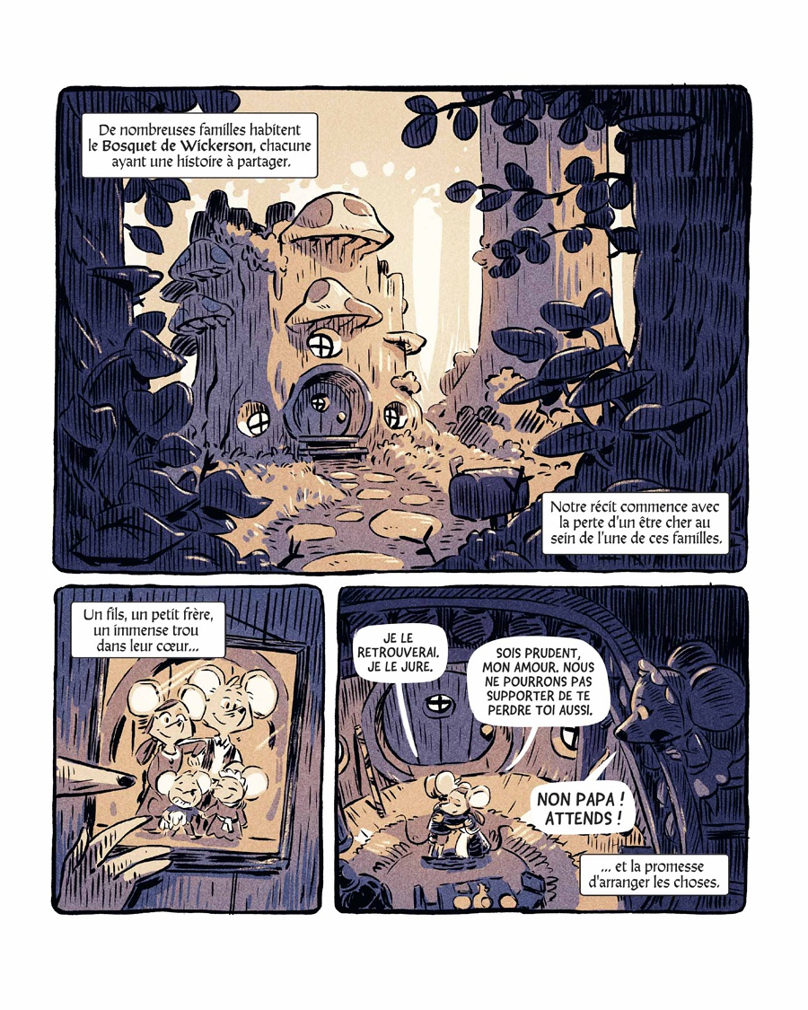 Torben Gerbille connaît chaque souche, chaque sentier de la forêt de Wickerson : il y a passé toute sa vie. Devenu un vieux conteur, le souriceau transmet ses souvenirs, ses peurs et ses victoires, dans un précieux grimoire.