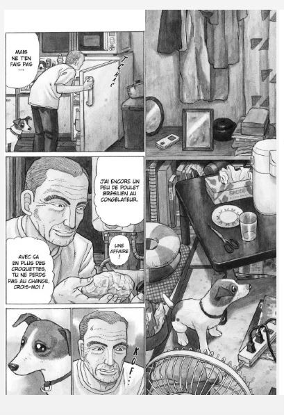 3.5 Un one-shot touchant qui mets en lumière ce qui risque d'arriver lorsqu'on devient un laisser pour compte dans la société japonaise, que l'ont soit un humain ou un animal et malheureusement c'est une situation tellement universelle que n'importe quel lecteur dans le monde pourrait retrouver des problèmes de sa propre société. Alors on suit l'histoire d'un vieux qui vit en situation précaire et seul depuis la mort de sa femme. Le seul autre être vivant dans sa vie est sa vieille chienne et lorsqu'il apprend qu'il a une tumeur, il va tout faire pour que sa chienne ne soit pas abandonnée après sa mort. C'est un récit plein d'émotions (il y a une scène qui va faire pleurer à coup sur les amateurs de chiens !) sans qu'on force trop dans le mélodrame. Je n'ai jamais eu l'impression que l'auteur voulait absolument que je pleure même dans les scènes qui sont clairement fait pour que je ressente des émotions. Hormis peut-être une ou deux coïncidence un peu grosse, ce qui est arrive à ce pauvre vieux et à sa chienne est crédible et on a bien de la peine pour eux. Le récit est captivant et comme c'est un one-shot le scénario n'est pas inutilement étiré. Le dessin est du réaliste comme je l'aime dans les mangas, il y a un peu de dynamisme et ce n'est pas du tout figé.