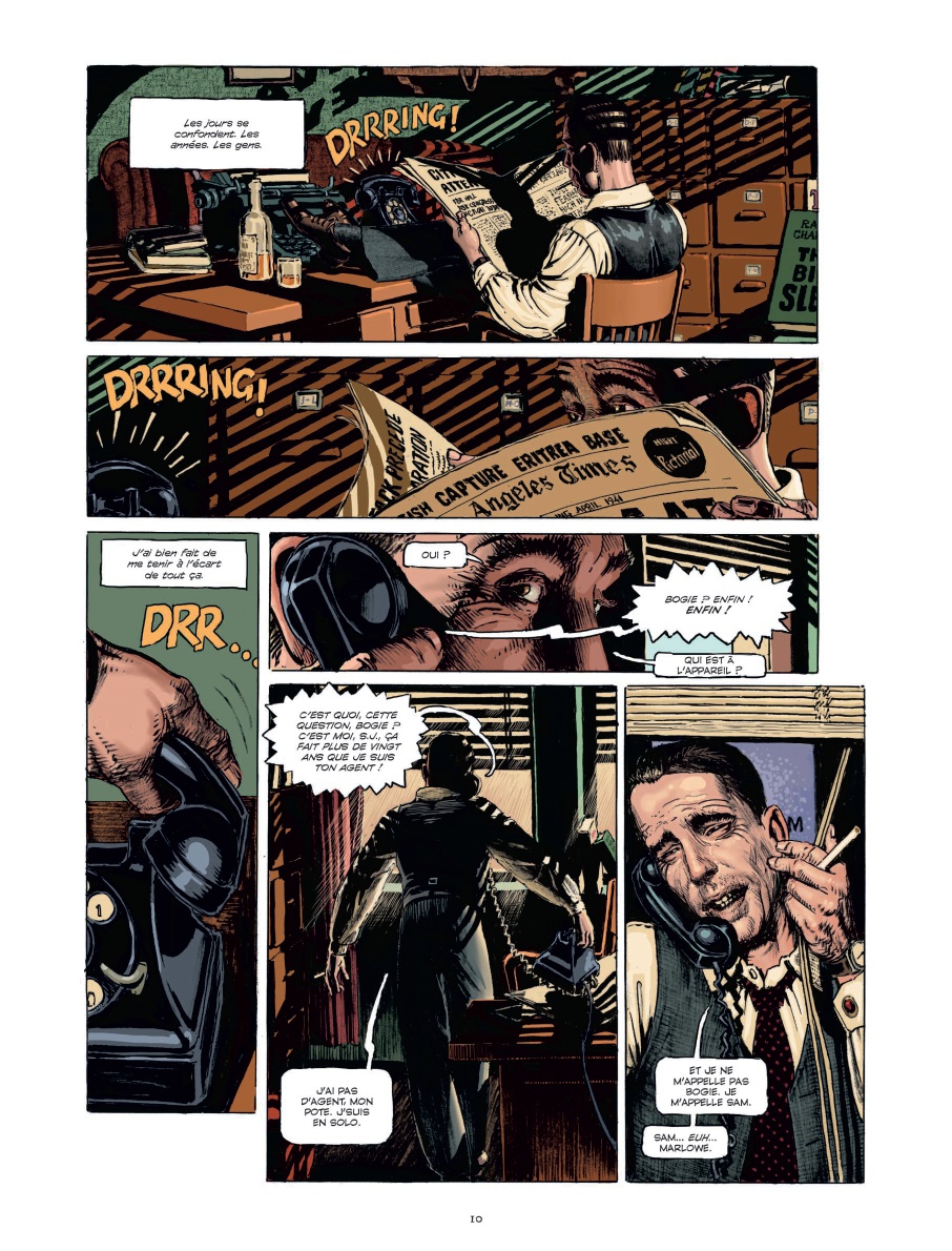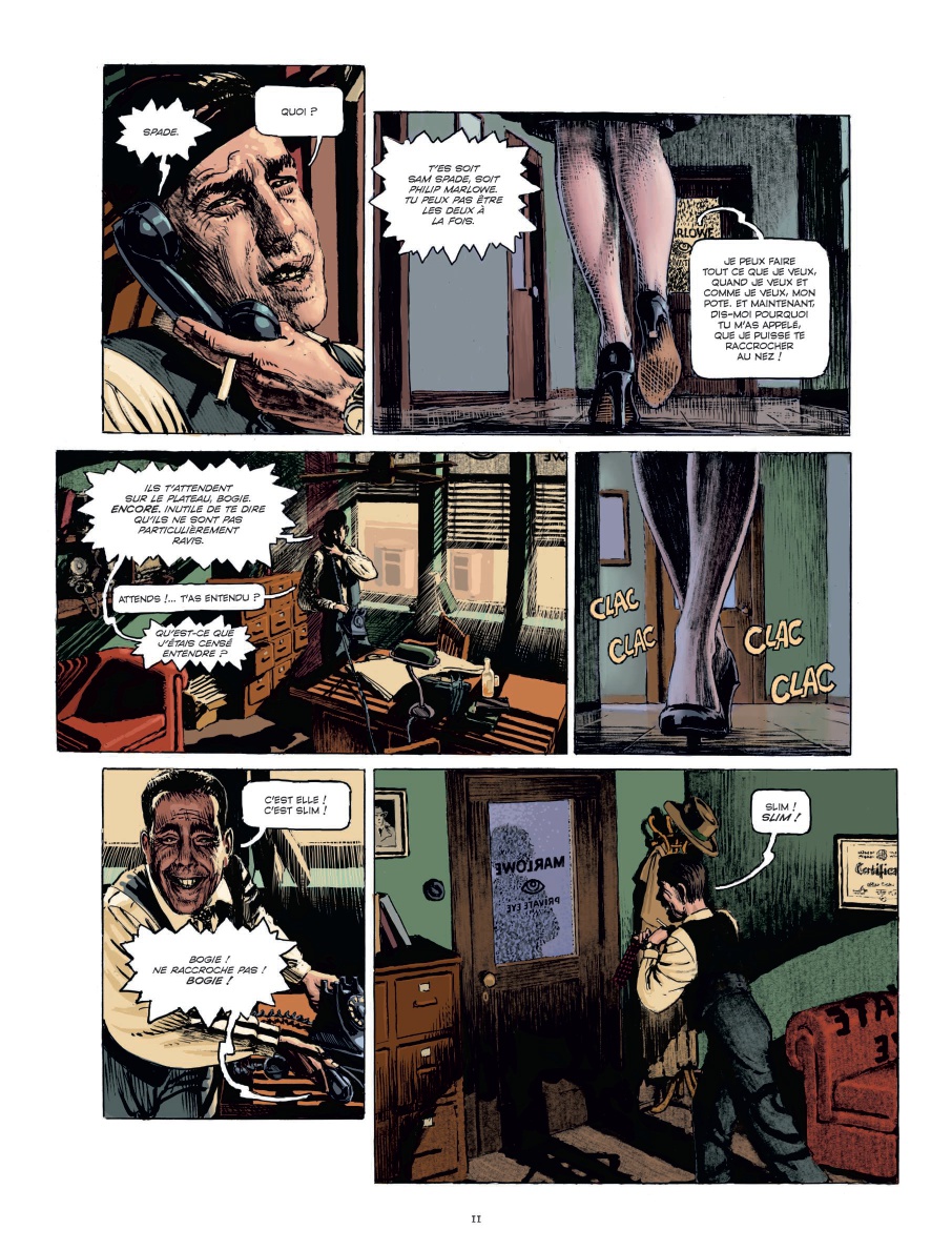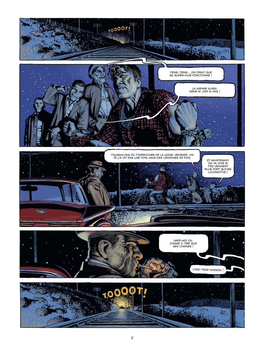 Frankenwood est un album qui se distingue par l'originalité de son scénario, à la fois hommage à l'âge d'or d'Hollywood et polar étrange, caustique et décalé. On y croise Humphrey Bogart, Marylin Monroe, Clark Gable, Laurel et Hardy, Alfred Hitchcock, et même quelques figures plus récentes comme Bardot ou Nicholson. Tous ces personnages sont ramenés à la vie dans un univers artificiel et coupé du monde, où leur mémoire se brouille et leur image est exploitée par des producteurs invisibles et sans scrupules. Le récit joue avec des accents de Frankenstein, de résurrections et de mémoire défaillante, créant un mélange ni vraiment sérieux ni vraiment loufoque. Le dessinateur Igor Kordey se fait visiblement plaisir à représenter ces visages célèbres. Quelques portraits sont frappants, parfois avec des accents graphiques rappelant Richard Corben, mais la qualité reste inégale : certains visages changent selon l'angle de vue et deviennent moins reconnaissables. Cela dit, la galerie de stars et l'ambiance rétro hollywoodienne donnent beaucoup de charme à l'album, et les décors et cadrages sont travaillés avec soin. Côté scénario, l'histoire est intrigante et souvent amusante, notamment lorsqu'on relève tous ces clins d'œil aux films et aux acteurs, mais elle manque de cohérence interne. Plusieurs éléments ne tiennent pas vraiment la route et l'intrigue ne mène nulle part de façon satisfaisante : la fin s'éternise et se cherche, laissant le sentiment d'un hommage appuyé et un peu embrouillé plutôt que d'une intrigue solide de bout en bout. On retient surtout le plaisir de voir ces figures mythiques évoluer dans un univers fantasmé et caustique, ainsi que la réflexion ouverte sur l'exploitation de l'image des stars, leur immortalité artificielle et la manière dont Hollywood broie ses icônes, avec un écho indirect à la problématique moderne de l'IA dans le cinéma. Frankenwood est un one-shot original et audacieux, visuellement plaisant et truffé de références cinématographiques, mais dont le scénario, surprenant par moments, reste surtout un prétexte pour explorer ce monde étrange et décalé plutôt qu'une intrigue rigoureuse. J'en suis ressorti amusé et intrigué, mais sans réelle sensation de conclusion ou de tension narrative complète.