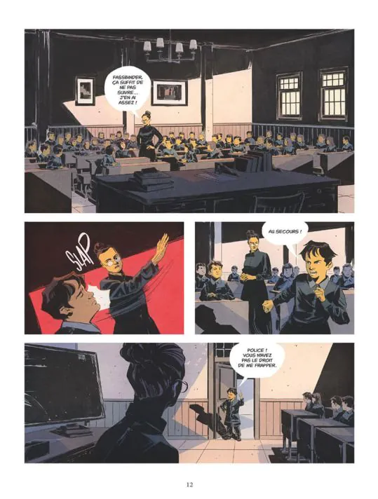 Rainer Fassbinder est un cinéaste allemand que je ne connaissais pas vraiment (contrairement à quelqu’un comme Werner Herzog). Simsolo en a visiblement été proche. Et ça se sent, car il entre ici dans l’intime du réalisateur et, s’il en dévoile les multiples facettes et la force, il ne cache aucune faille et défaut du personnage. On découvre donc un personnage et un cinéaste tous les deux atypiques et intrigants. Un cinéaste, acteur, dramaturge boulimique, qui multiplie les projets (le nombre de pièces de théâtre, de films qu’il réalise ou auxquels il participe en très peu de temps est incroyable. Avec une volonté d’intransigeance qui lui vaut de sortir des sentiers battus – mais aussi de connaitre une reconnaissance tardive et selon lui incomplète. La personnalité du bonhomme n’est pas en reste, et sort encore plus des sentiers battus. Il allie fidélité à quelques acteurs/actrices, à quelques amants (surtout) et maîtresses et versatilité. Son comportement semble avoir été limite à plusieurs reprises, et je pense que c’était quelqu’un qui nécessitait pas mal de courage pour supporter longtemps sa proximité – par ailleurs irradiante. Sa proximité avec des milieux d’avant-garde, voire avec l’extrême gauche allemande – est aussi intéressante. Reste que la narration m’a un peu lassé. Très saccadée, passant d’un bon mot, d’une période à l’autre, cela manque de liant et de fluidité à plusieurs reprises. Dessin et colorisation font le boulot, mais sont quand même très froids, et avare de détails – et parfois de précision. J’ai appris des choses intéressantes sur le personnage, donc la lecture est instructive. Mais ce même personnage, ainsi que la narration m’ont aussi laissé un peu de côté. Note réelle 2,5/5.