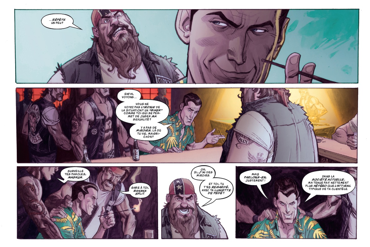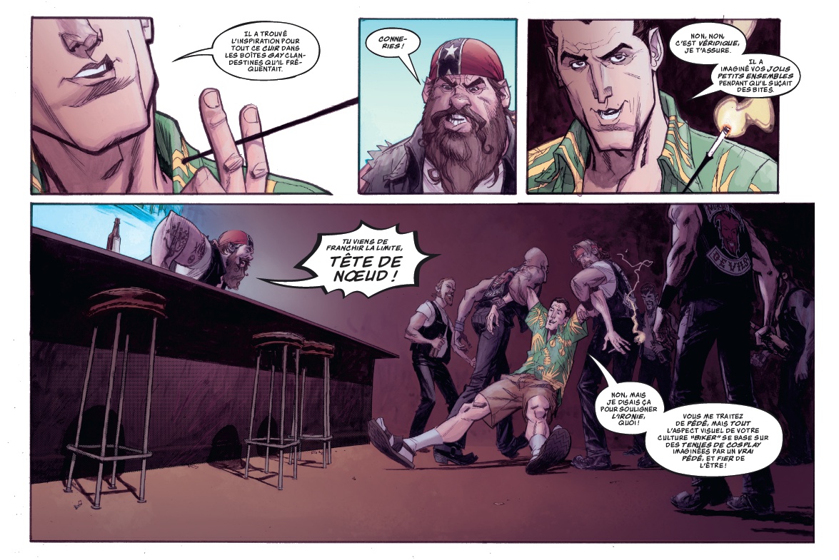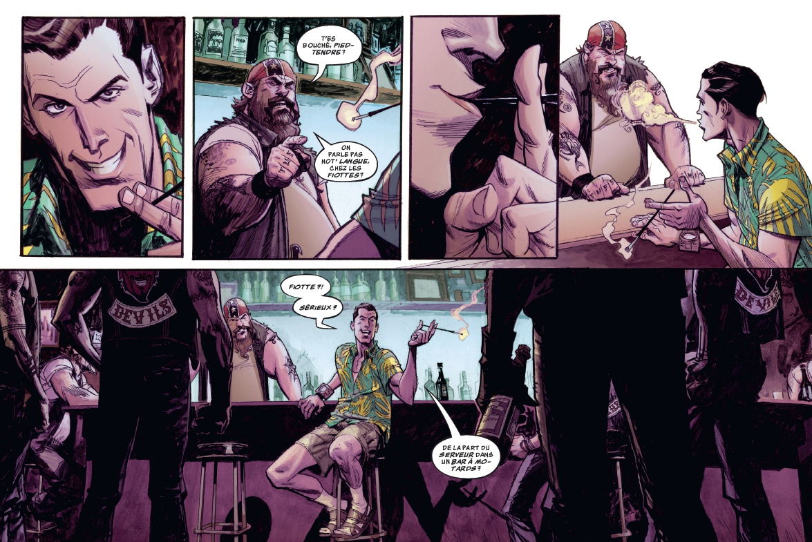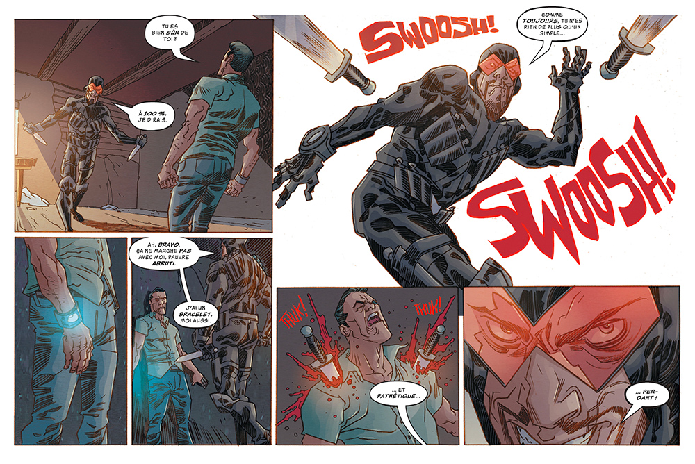 Voilà un album très interessant autant par sa forme atypique (format à l'italienne pour un comics, c'est pas tous les jours) que par le fond. Une variation originale des histoires de voyage dans le temps : il est ici question de juste pouvoir arreter le temps, se balader, faire un trucs ou deux et pendant ce temps-là tous les gens sont figés et ne bougent pas. Et pendant qu'il s'est écoulé 1 seconde pour tout le monde, la personne en possession de se pouvoir a eu une heure ou deux pour vaquer à ses occupations. Et la question qui va avec : que faire d'un tel pouvoir ? L'entrée en matière est assez prenante : des évènements bizarres et inexpliqués aux quatre coins du globe. Et plutôt du sordide et du violent : l'élimination d'un gang de motards, la disparition de chefs d'états, des règlements de comptes entre gangs... Seul un scientifique, à l'origine du procédé, semble s'y intéresser et comprendre ce qui se cache derrière ces mystères. C'est interessant, original, dynamique, le découpage est efficace et l'action va bon train. Le dessin est esthétique, colle bien à l'ambiance du récit. Pour 4 chapitres en tout cas. Un second dessinateur s'est chargé des 4 derniers chapitres, et ça le fait beaucoup moins. Un style moins réaliste, plus cartoon, mais surtout bien différent du premier. Rien dans l'histoire ne justifie cette différence. Et c'est un peu regretable, car c'est moins joli dans la seconde moitié, l'ensemble perd en cohérence, on ne reconnait pas hyper bien les personnages. En tout cas il faut un moment pour se les réapproprier. L'histoire est rythmée, et les péripéties, comme les révélations, tiennent bien la route. Jusqu'au dernier chapitre qui se résume à des scènes de poursuite alternées avec des scènes de baston. Cette dose survitaminée n'est pas la meilleure partie du scénario. Et la chute finale, bien énigmatique, n'apporte pas grand chose, si ce n'est laisser une ouverture pour une possible suite. Au final on a quand même un bel album qui se lit d'une traite. Le thème est sympa et traité de manière originale. Cela suffit amplement à rassasier un lecteur amateur de séries d'action.
