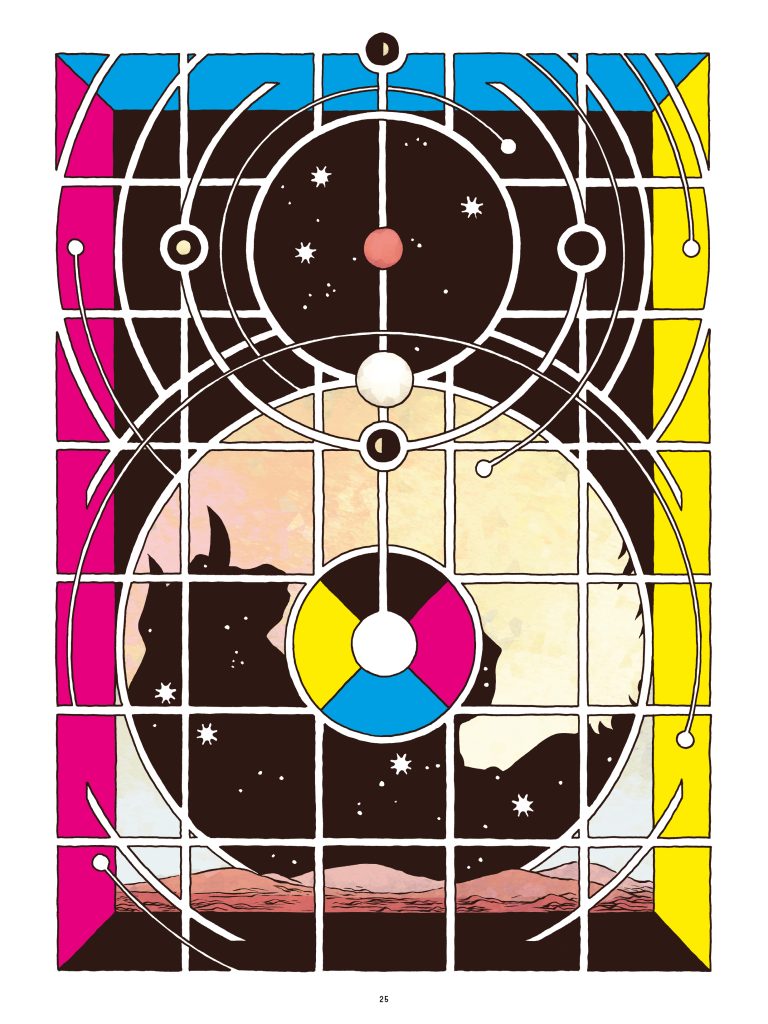 Drome, c’est clairement pas une BD comme les autres. C’est même difficile de la ranger quelque part. On est face à un objet un peu extraterrestre dans le 9e art. L’histoire, sur le papier, est assez simple : une sorte de genèse, avec des entités qui créent la vie, le chaos qui s’installe, puis une tentative d’imposer un ordre. Une lutte entre forces opposées, presque mythologique. Mais très vite, tu comprends que ce n’est pas vraiment ça l’essentiel. Parce que Drome, ça se lit autant que ça se regarde. C’est une BD quasiment muette, qui repose énormément sur sa narration visuelle. Et là, Lonergan est en démonstration. Il joue avec les cases, les découpe, les répète, les déforme. Il te fait ressentir le temps, le mouvement, les impacts… juste avec la mise en page. Par moments, t’as presque l’impression de redécouvrir comment lire une BD. Visuellement, c’est fascinant. Minimaliste en apparence, mais en réalité ultra travaillé. Les couleurs, les compositions, le rythme… tout est pensé pour t’embarquer dans une expérience plus que dans une simple histoire. Mais justement, ça peut aussi créer une distance. C’est brillant, c’est original, mais parfois plus cérébral qu’émotionnel. On admire beaucoup… sans toujours être totalement impliqué. Au final, Drome, c’est une œuvre à part. Pas forcément accessible, pas forcément pour tout le monde, mais clairement marquante. Une BD expérimentale, audacieuse, presque déroutante… mais impossible à ignorer.