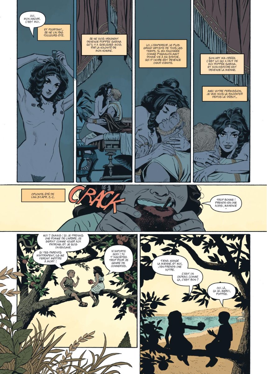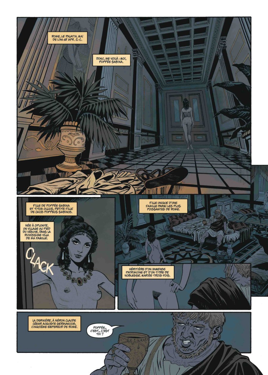 Pas vraiment au fait des histoires des dynasties romaines, j'avoue m'être fait surprendre par l'histoire de Poppée que je ne connaissais pas. Poppée, connue pour avoir été la compagne de Néron, fut une femme ambitieuse et calculatrice, qui ne recula devant rien pour parvenir à ses fins. Issue d'une famille prestigieuse remontant à Alexandre Le Grand, tombée en disgrâce à cause d'une machination de l'épouse de l'empereur Claude, Poppée en gardera une rancœur tenace qui nourrira sa soif de vengeance et de pouvoir. Ce qu'elle parviendra merveilleusement à faire, mais à quel prix... Je vous laisse la surprisse de sa seconde vie, pour ceux qui ne la connaissent pas, je ne vais pas vous spoiler ! C'est plutôt bien mené, tant sur le dessin que sur le scénario : la colorisation un peu terne de Lou surprend au début mais est finalement bien trouvée pour imposer une ambiance globale qui se marie parfaitement avec nos personnages et leurs péripéties. Voilà en tout cas un personnage historique que je ne connaissais pas, très bien mis en lumière par cet album. (3.5/5)