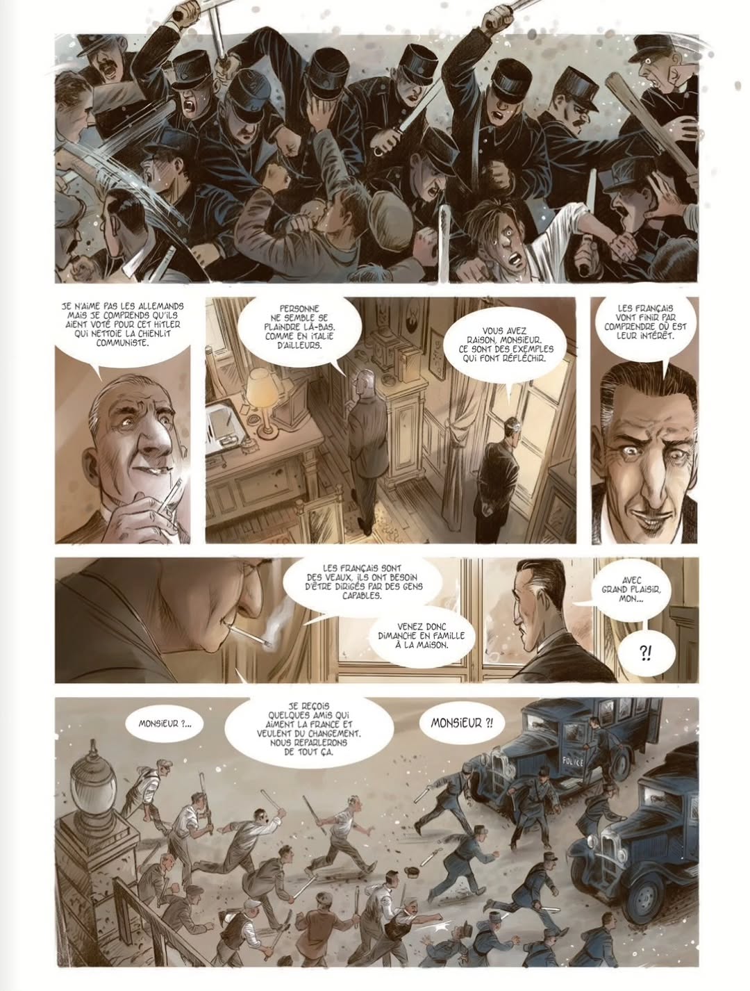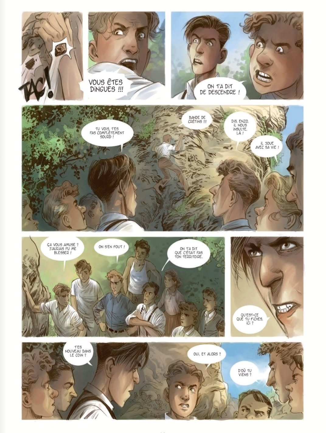 À la fin de l'année 1935, dans une petite ville industrielle française, François, 17 ans, grandit sous l'autorité d'un père violent, notable local aux sympathies fascisantes, tandis que la montée des tensions sociales et politiques précède l'arrivée du Front populaire. Les récits situés dans les années 30 se concentrent souvent sur la montée du fascisme ou annoncent directement la Seconde Guerre mondiale, mais abordent plus rarement les conflits sociaux qui ont précédé l'élection du Front populaire et le climat politique qui l'a rendu possible. Cet album montre bien à quel point la situation pouvait être explosive dans certaines villes industrielles, avec une opposition sociale extrêmement marquée entre bourgeoisie locale et classe ouvrière, tout en laissant déjà entrevoir les fractures idéologiques qui ressurgiront pendant l'Occupation, entre futurs collaborateurs séduits par les idées fascistes et figures plus proches du communisme ou du socialisme qui entreront plus tard dans la Résistance. Visuellement, Eric Stalner livre quelque chose de solide. Son dessin reste dans une ligne assez classique et académique, mais c'est propre, lisible et efficace. La colorisation soignée fonctionne bien, notamment dans le contraste entre les décors campagnards verdoyants et les scènes d'intérieur plus étouffantes autour du père du héros. Les personnages sont reconnaissables et la mise en scène sait créer une vraie proximité avec François. Le scénario repose sur une base assez convenue : le fils adolescent qui se rebelle contre un père autoritaire et violent, puis s'émancipe au contact d'un milieu populaire présenté comme plus sincère et solidaire. L'album souffre aussi parfois d'un certain manichéisme, avec des bourgeois particulièrement odieux et méprisants face à des "rouges" certes plus brusques et parfois violents, mais montrés comme loyaux et profondément humains. Du coup, la confrontation sociale paraît par moments un peu caricaturale, avec une haine et un mépris très appuyés de part et d'autre. Ceci dit, quand on observe aujourd'hui certaines formes de radicalisation et de polarisation, on se dit aussi que les tensions de l'époque pouvaient sans doute être tout aussi violentes, simplement sous d'autres formes. Mais malgré ces réserves, cela fonctionne vraiment bien. J'ai été pris par le parcours de François, par sa manière d'encaisser progressivement la violence de son père jusqu'à parvenir à lui résister, par son tiraillement entre son milieu d'origine et ses nouveaux amis, par cette camaraderie parfois très virile née des luttes communes, ainsi que par la discrète romance qui se développe en parallèle. Il y a une vraie envie de le voir triompher des injustices qu'il subit, à la fois sur le plan familial et social. Le rythme est efficace, le récit est accrocheur, et j'ai surtout apprécié qu'il s'agisse d'un one-shot qui va réellement au bout de son histoire. L'épilogue de plusieurs pages consacré aux années suivantes apporte une vraie satisfaction et donne encore plus de poids au destin de François et des autres personnages, tout en renforçant l'intérêt historique de l'ensemble. Au-delà de son classicisme, c'est surtout une BD qui parvient à rendre cette période charnière très concrète et incarnée, en montrant comment les fractures sociales et politiques de l'époque annonçaient déjà une partie des drames à venir.