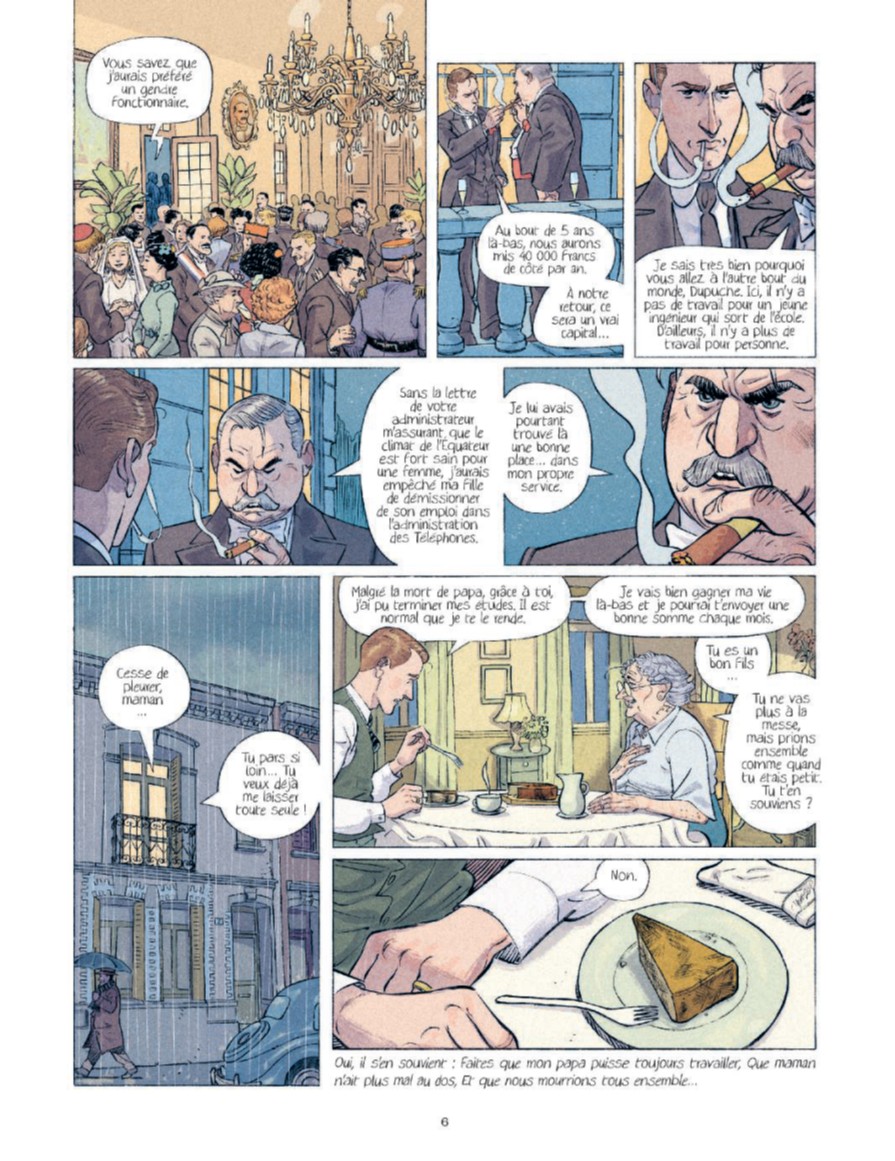 Un jeune couple, Germaine et Joseph, se marie à Amiens. Ils sont nés dans la même rue, se sont toujours aimés. Elle a un bon poste à l'administration des Téléphones, dans le service dirigé par son père. Lui sort d'une école d'ingénieur, grâce aux quelques économies de sa mère. Sauf qu'il n'y a pas de travail pour lui en France. Alors ils partent. Joseph a accepté la place de directeur de la Société Anonyme des Mines de l'Équateur, la SAME. Quinze jours de traversée et ils accostent à Panama, en attente d'une lettre de crédit pour rejoindre Guayaquil. Cette lettre n'arrivera pas. L'entreprise est en faillite. Le voyage s'arrête là.