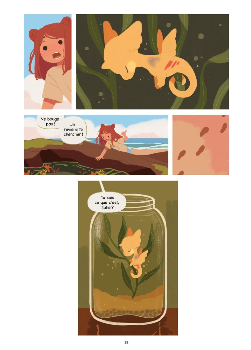 De retour dans le village côtier de son enfance après une tempête, Lana découvre de mystérieuses créatures marines liées à l'histoire de sa famille et tente de protéger l'océan face aux dégâts causés par les humains. Katie O'Neill propose ici un univers doux, coloré et feel good, avec des créatures toutes mignonnes qui semblent sorties d'un croisement entre l'imaginaire de Hayao Miyazaki, des licornes marines et un conte écologique destiné à un jeune public. Visuellement, difficile de nier que c'est attendrissant : les couleurs pastel sont lumineuses, l'univers marin est agréable à parcourir et les aquicornes ont clairement été conçus pour faire fondre le lectorat jeunesse. Sur le fond, les intentions sont évidemment louables : deuil, écologie, protection des océans, transmission familiale, coexistence avec la nature, avec en prime une volonté très actuelle d'inclusivité bienveillante qui traverse l'ensemble. Le problème, c'est que j'ai trouvé le récit trop appuyé dans sa démonstration. Le message environnemental manque franchement de subtilité : l'océan est présenté comme un sanctuaire pur et merveilleux, l'humanité comme une force destructrice dès qu'elle s'éloigne des bonnes pratiques traditionnelles, et toute la morale écologique finit par paraître très scolaire. J'avais parfois l'impression de lire un conte militant qui coche consciencieusement ses thématiques plutôt qu'une histoire laissant vraiment respirer ses enjeux. En comparaison, les films du Studio Ghibli (et particulièrement Ponyo, dont les points communs avec cette BD sont nombreux) me semblent transmettre ce type de message avec infiniment plus de finesse, de poésie et surtout une envie bien plus naturelle d'adhérer à ce qu'ils racontent. Le récit souffre aussi d'une narration parfois bancale : certains enchaînements manquent de fluidité, certaines révélations arrivent un peu abruptement, et plusieurs dialogues m'ont semblé soit assez étranges dans leur formulation, soit trop téléphonés dans leur manière de faire passer les messages du récit. L'ensemble reste lisible, mais manque parfois de naturel. Ça reste une BD sincère et visuellement charmante, et j'imagine qu'elle peut séduire un jeune public, en particulier des préadolescentes sensibles aux récits doux, romantiques et idéalisés autour de la nature. Mais pour ma part, j'ai trouvé l'ensemble un peu trop mièvre et démonstratif pour réellement m'emporter. Note : 2,5/5