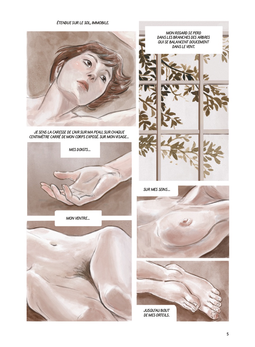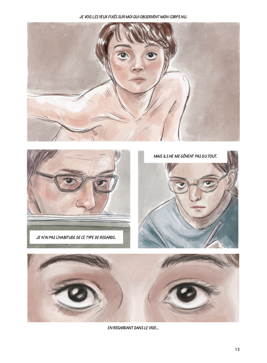 Mansoureh Kamari raconte son enfance et son adolescence en Iran, marquées par l'oppression systémique des femmes, en les mettant en parallèle avec son présent en France où elle pose nue pour des cours de dessin, comme une manière de se réapproprier enfin son corps et son histoire. Dès qu'un récit aborde frontalement les violences faites aux femmes et une oppression institutionnalisée aussi profondément injuste, ça me met immédiatement en rage tant ce type d'injustice m'est insupportable. Et sur cet aspect, l'album est extrêmement fort. Toute la partie consacrée à l'enfance et à l'adolescence en Iran est souvent bouleversante : le poids du père tyrannique, la peur permanente, la manière dont le corps des femmes est contrôlé, sexualisé, humilié, et cette violence banalisée qui semble infiltrer aussi bien la sphère familiale que l'espace public. C'est parfois révoltant à lire, mais très bien mis en scène, avec des passages vraiment marquants. Graphiquement, j'ai aimé le travail de Mansoureh Kamari. Son dessin n'est pas spectaculaire au sens démonstratif du terme, mais il dégage quelque chose de doux et sensible. Les visages, en particulier celui de l'autrice, sont souvent beaux et expressifs, avec une vraie délicatesse dans les regards et les émotions. Les décors sont plus en retrait, parfois à peine esquissés, mais ça semble presque volontaire tant l'album reste focalisé sur les corps, les visages et l'intime. L'alternance entre les pages plus grises du passé et les séquences plus lumineuses du présent fonctionne également bien. En revanche, il m'a manqué des morceaux importants du puzzle pour être totalement emporté. J'aurais aimé en apprendre davantage sur le fonctionnement concret de la société iranienne au-delà de ce que l'album montre déjà, mais aussi sur son propre parcours de jeune adulte. J'ai par exemple été surpris de voir qu'elle avait malgré tout pu travailler dans l'animation, même difficilement, sans que ce contexte soit vraiment développé. De la même manière, on ne sait rien de la façon dont elle a quitté l'Iran, si sa famille a tenté de la marier de force, comment son exil s'est organisé, ou comment cette transition vers la France s'est réellement faite. Ce sont précisément ces éléments qui m'ont parfois manqué. Je comprends qu'il ne s'agit pas d'un documentaire mais davantage d'un cri intime, mais l'absence de certains repères m'empêche de l'apprécier pleinement. J'ai aussi été un peu plus partagé sur les passages assez longs autour de son rapport au dessin et à son traumatisme. Je comprends parfaitement leur fonction dans son processus de reconstruction, mais au-delà du fait qu'ils ne m'ont pas particulièrement parlé, ils ont aussi ravivé cette frustration de ne pas avoir eu davantage d'éléments sur son parcours et sur la société iranienne elle-même. Malgré mes réticences, ça reste un témoignage fort, nécessaire et souvent très touchant, porté par un vrai sens de l'émotion et une colère que j'ai largement partagée pendant la lecture.