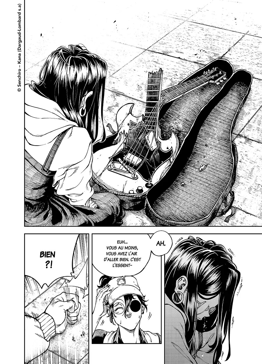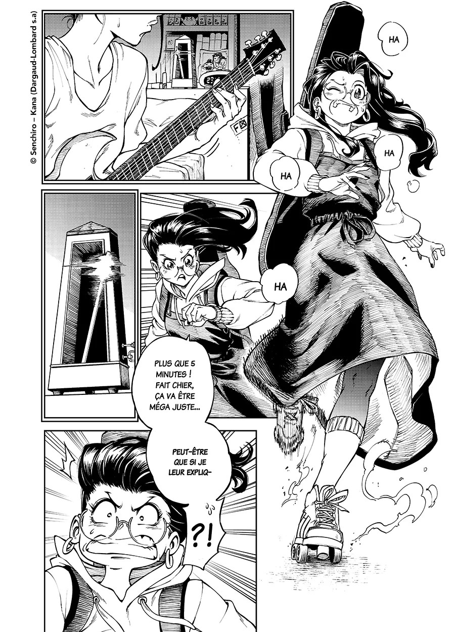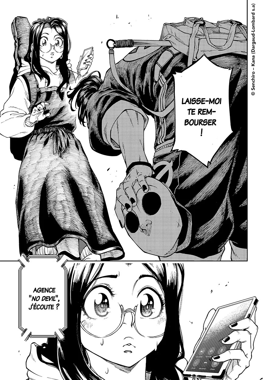 No Devil est la nouvelle série de Senchiro, mangaka français qui s’est déjà fait remarquer avec sa précédente série, Sweet Konkrete. Cette nouvelle série mixe romance et fantastique au travers d’une intrigue dynamique plutôt destinée à un public jeune (adolescents et jeunes adultes). Lucie, une jeune femme un peu maladroite et passionnée de musique, va croiser la route (dans le sens premier du terme) de Léo, un chasseur de démons pas des plus adroits, lui non plus. Et si cette première rencontre ne se passe pas de manière idyllique, on comprend vite que ces deux zozos ne sont pas insensibles au charme de l’autre. La situation prend cependant un tour inattendu lorsque Lucie découvre qu’elle-même se transforme en démon lorsqu’elle subit un choc émotionnel… Ce premier tome nous présente les différents personnages et l’état d’esprit de la série (action, humour, romance, fantastique). Le début est par moments un peu bordélique, avec un flash-forward et des flash-backs que je n’ai pas toujours saisis immédiatement. Plus tard, l’auteur n’hésite pas à intercaler des illustrations sans rapport direct au cœur de ses planches (on peut ainsi tomber sur une illustration de Lucie jouant de la guitare au milieu d’une planche dans laquelle elle est en discussion avec sa mère). J’ai donc eu ce sentiment que Senchiro avait du mal à se canaliser. Mais ça ne nuit pas vraiment au manga, parce qu’il y a aussi pas mal de qualités dans celui-ci (personnages attachants, dynamisme, bonne idée de départ). Tout ça pour dire que si je ne crie pas au chef d’œuvre et si je regrette certains clichés, ce premier tome est quand même sympa à lire et invite à découvrir sa suite. NB : une bande son, signée par l’auteur lui-même, est également disponible. Elle donne logiquement la part belle à la guitare électrique. Et là encore, j’ai trouvé que l’auteur avait à la fois tendance à s’éparpiller et un talent évident qui devrait mieux être canalisé.