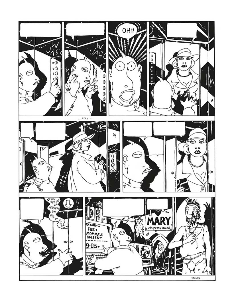 Altan est pour moi dans le top 10 des auteurs atypiques. Commencez peut-être par Friz Melone et Columbo. Son graphisme, on n'aime ou pas, perso j'adore. Le plus jouissif pour moi se trouve dans les petits commentaires décalés en bas de cases. Certes, l'humour, c'est aussi comme les goûts et les couleurs. Les histoires sont souvent confuses, particulièrement celle de Zorro Bolero mais je viens de trouver un résumé sur un site italien qui va me permettre de relire l'album avec grand plaisir. (rudi, il blog... via google images avec zorro bolero). Je trouve Altan particulièrement visionnaire quand on repense au monde sans internet de l'époque. Ses dessins de villes qui grouillent et qui sont envahies d'écrans, de bruit, de religions et de corruption... Quand on voit aujourd'hui nos chaines en continu, le harcèlement téléphonique et les notifications incessantes sur nos smartphones qu'il est impossible de désactiver... Visionnaire, je trouve.
