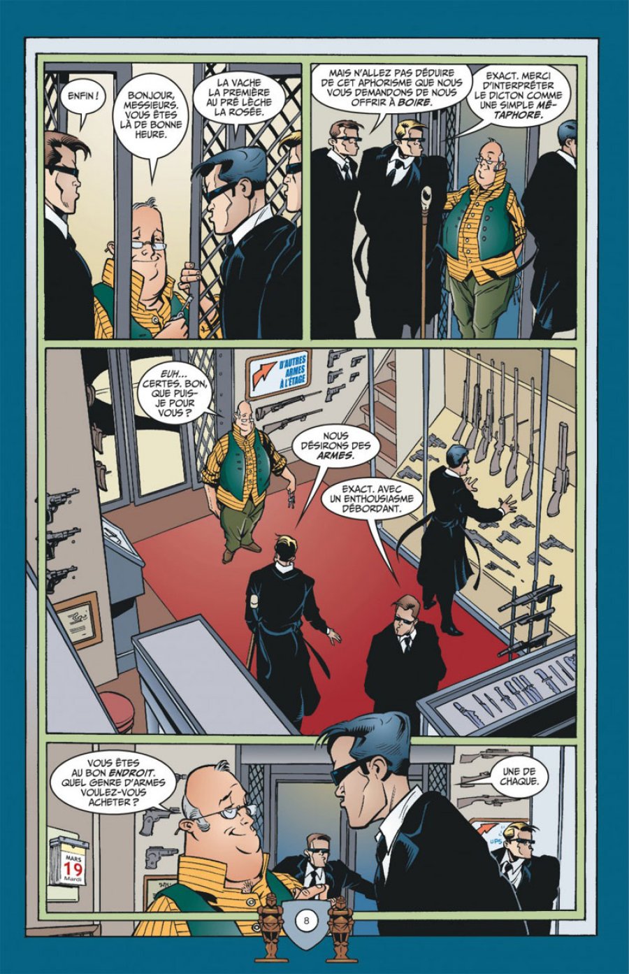 J’ai beaucoup apprécié les 6, 7 premiers albums puis mon intérêt a diminué, avant de retrouver de sa vigueur vers le 16ème album… et de rechuter sur les trois derniers (le dernier a d’ailleurs été assez pénible à finir). En fait, je trouve que l’idée de départ est excellente et que certains personnages sont extrêmement réussis. Malheureusement, l’évolution du scénario tombe dans un premier temps dans un manichéisme que je trouve peu opportun (alors que justement les personnages sont détournés de leur image initiale, pourquoi ensuite en faire soit de gentils méchants soit de méchants gentils sans plus approfondir leur psychologie ?). Ça va mieux par la suite avec quelques passages vraiment très plaisants mais plusieurs personnages disparaissent alors peu à peu de l’avant-scène et la richesse du récit en prend par conséquent un coup. Pour l’originalité du scénario, ce récit est vraiment à essayer. Et si, comme moi, vous vous attachez à l’un ou l’autre personnage, je pense que vous aurez du mal à abandonner la série en cours de route. Côté dessin, ce n’est pas ma tasse de thé mais je trouve le style de Mark Buckingham efficace. Par contre, (on a souvent droit à l’un ou l’autre chapitre dessiné par un artiste différent dans des styles parfois éloignés du style principal) certains chapitres auront vraiment été pénibles à lire du fait d’un style graphique vraiment peu agréable pour moi. Heureusement, on revient toujours au style du début et donc, ces chapitres ne sont qu’un pénible mais pas insurmontable moment à passer. Certainement à découvrir mais du fait de mes chutes d’intérêt, je reste sur un 3/5 qui signifie en l’occurrence « Ah ouaiiis, pas mal du tout ! ».