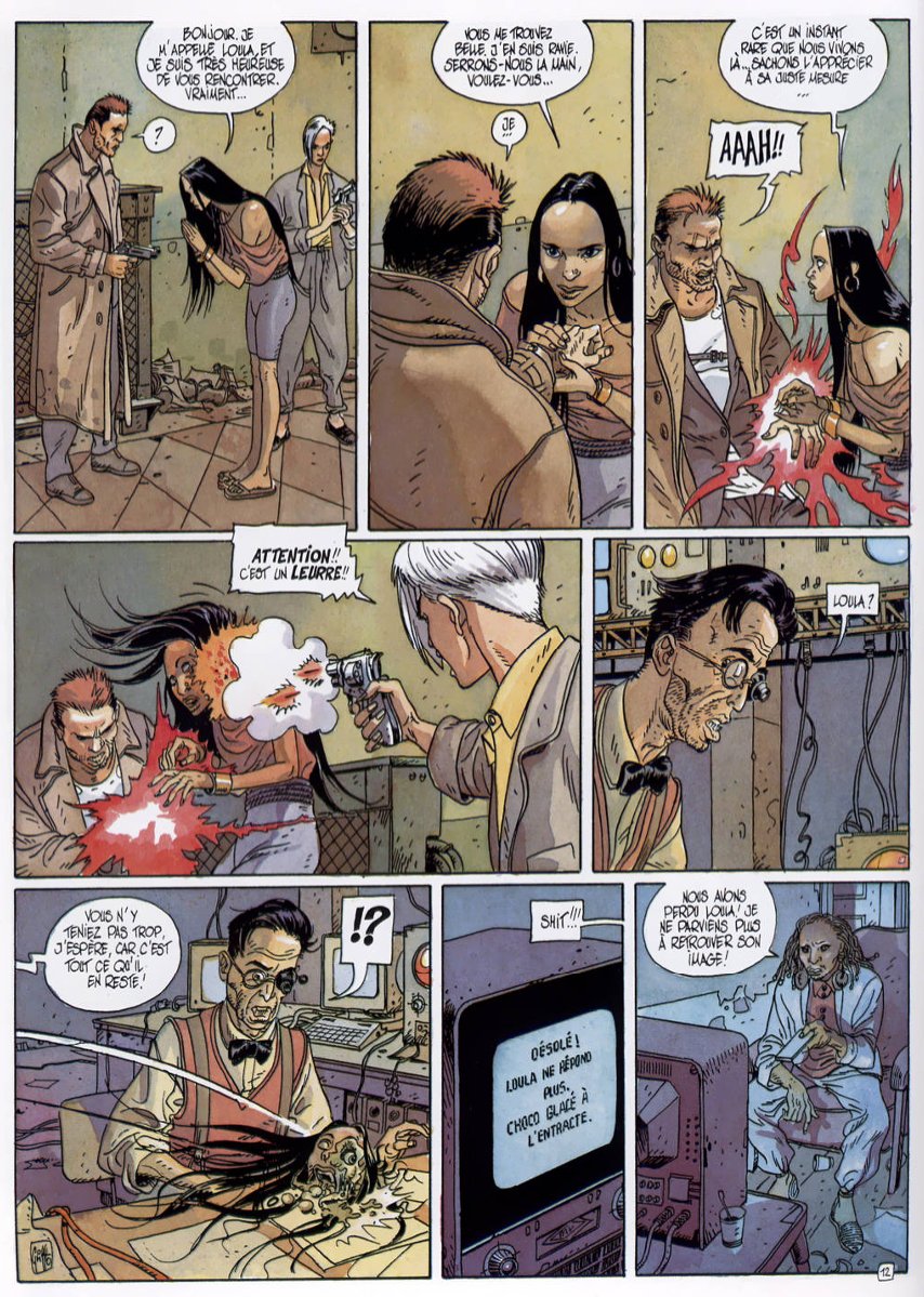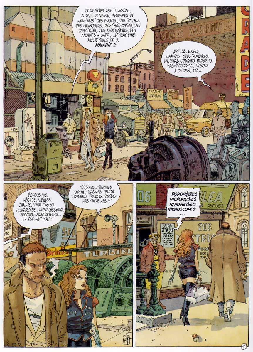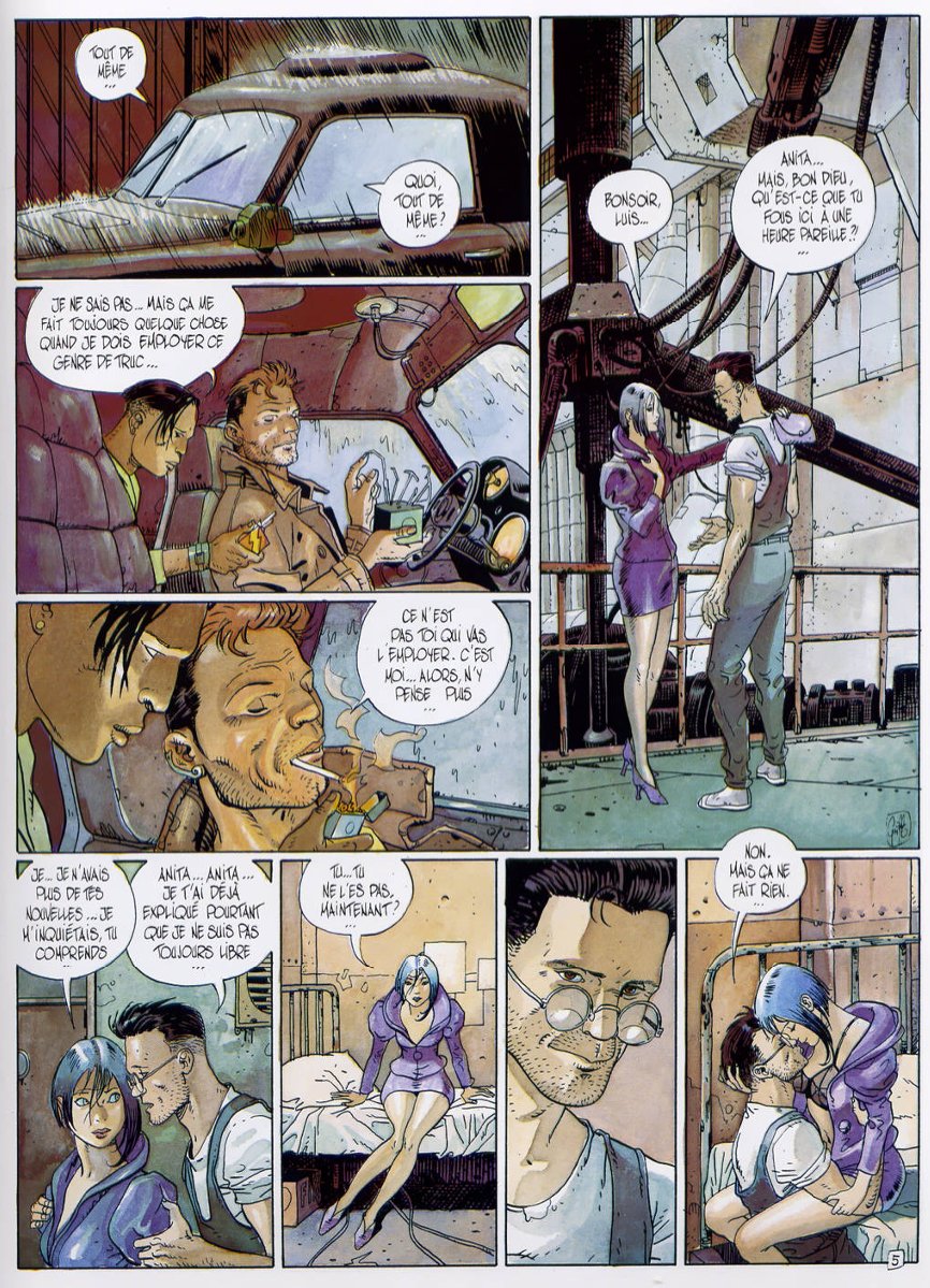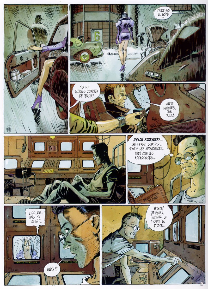Je n'avais pas trop aimé Beatifica Blues des mêmes auteurs que je trouvais trop kitsch. C'est en commençant cette lecture que je me suis aperçu que cette histoire était un prolongement à l'univers de cette première oeuvre. Je dois cependant avouer que j'ai nettement préféré cette lecture moins délirante qui offre un aspect remarquable sur cette société du futur en pleine déliquescence. L'idée de départ est même très intéressante : les hommes contaminent les machines par une espèce de virus qui les rongent de l'intérieur. Presque une parabole ! Le premier volume en guise d'introduction nous avait juste exposé au tempérament violent du personnage de Samba Bugatti. La suite nous réserve bien des surprises. On peut également être admiratif devant la précision du trait surtout dans les décors de ce monde futuriste à l'agonie. Les frissons sont garantis. Le réalisme est tout à fait saisissant avec des personnages féminins très réussis. Je ne tarirais pas d'éloge sur le scénariste qui compte parmi mes préférés. Il sait toujours nous surprendre au détour d'une histoire par sa capacité à nous rendre attentif. Des épisodes tumultueux dans une ambiance sombre. Nous avons là une bd de science-fiction assez sympa qui a toutefois un peu vieilli. Fan d'univers décalés, ce titre est pour vous !