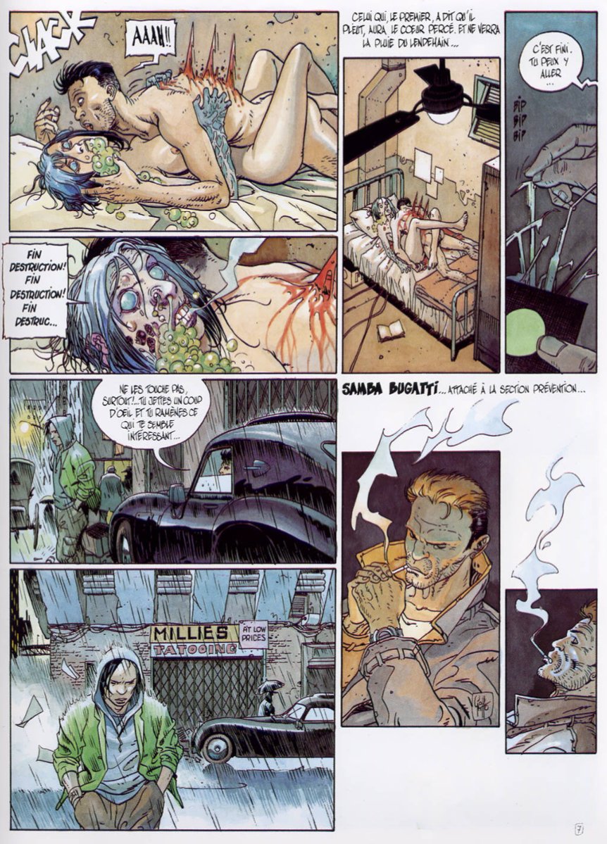 L'univers crée par Dufaux est loin, trés loin d'être un ramassis de clichés. On navigue ici dans un monde à la fois familier et vraiment original. Ceci dit, Samba bugatti par son ton singulier, peut trés vite dérouter. Cette série se rapproche en effet de la science fiction -d'auteur... pour ceux qui connaisse un peu le ciné... c'est dans la même veine que THX 1138 de Lucas ou Bienvenue à Gattaca (pas par les thèmes approchés, mais par le climat qui se dégage). Quant au dessin, il est en parfaite harmonie avec le sujet. De la bd de sf, trés aboutie.