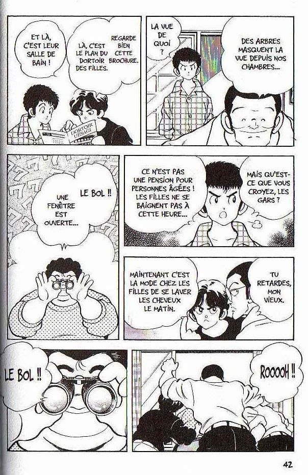 "Rough" est un des mangas d'Adachi que je préfère. Celui où les relations entre les personnages, notamment l'amitié (et bien sûr l'amuuur) sont les plus développées, de façon réaliste et sensible. Et c'est tout sauf un shonen classique. Tous les persos sont déjà des champions ? Pas tout à fait, ils ont encore du chemin à parcourir, mais de toute façon ce n'est pas le sujet central de "Rough". Le sport, dans "Rough", c'est comme dans les autres mangas d'Adachi un simple élément de l'histoire, et pas du tout un but en soi. D'ailleurs on verra par la suite qu'il ne sera là que pour souligner les rivalités et les amitiés entre les personnages, et pas du tout pour montrer les échelons qui amèneront les héros au sommet. Et puis ça participe au réalisme du récit : il n'y a que dans les mangas qu'on devient champion en deux-trois ans. La fille ? C'est vrai qu'Ami Ninomiya n'est pas forcément l'héroïne d'Adachi qui a le plus de caractère, mais elle est très très loin de jouer un rôle de cruche ou de potiche. Dans le premier tome, on la voit peu, ça changera. L'humour ? Bon, là j'avoue que la traduction française n'y fait pas forcément honneur... Les mangas d'Adachi sont plein de jeux de mots qu'il aurait fallu adapter plutôt que de les traduire littéralement. Et les dialogues n'ont pas le naturel qu'ils ont en VO, ce qui est encore alourdi par les notes de bas de page qui ôtent toute fluidité à la lecture. Espérons que cela s'arrangera par la suite...