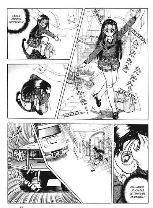 Ces deux volumes sont composés à chaque fois d'une dizaine d'histoires courtes et sans scénarii élaborés, on peut même dire que l'orientation est doucement débile. Par exemple on trouvera pèle mêle: une jeune fille qui rêve de se faire culbuter entre deux allées de rhododendrons, deux jeunes abrutis qui échouent chaque fois qu'ils tentent de perdre leur pucelage, ou encore un professeur en médecine qui fornique avec une infirmière aux allures de nymphette (pendant sa pause et en plus devant un cadavre frais...) Les dessins sont plutôt réussis et ils contiennent les codes graphiques propre au hentai (grands yeux, grimaces débiles, bave aux lèvres etc...). Par contre vu que la version originale était censurée (flous ou effet pixel), l'éditeur français a redessiné les parties sexuelles, et on ne peut pas dire que ce soit soigneux: on dirait que ces éléments ont étés rajoutés au tractopelle tant cela tranche avec le reste, les traits sont grossiers, c'est dommage... Donc une BD pornographique relativement faiblarde, à noter que l'auteur a inclus beaucoup d'humour dans ses sketches, ce qui aide à faire passer le côté un peu "gros" des phantasmes mis en scène ici. Allez 2/5 pour les quelques sourires occasionnés par la débilité de certaines situations.